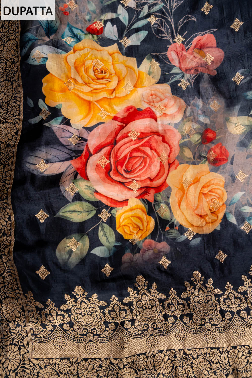 Panna Eternal Favorite Black Crepe Unstitched Salwar Kameez With Crepe Dupatta