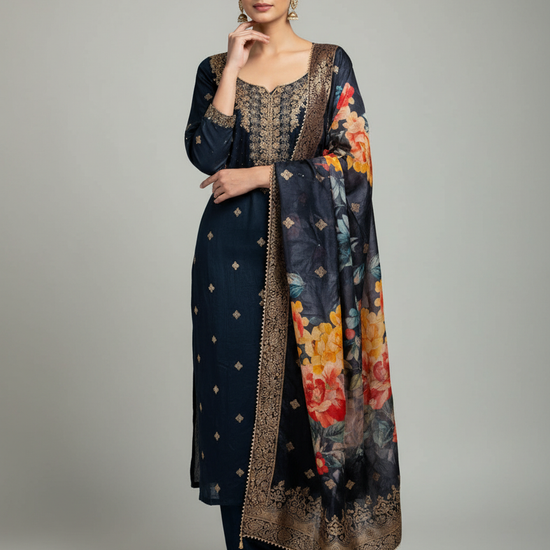 Redefine elegance with this stunning Crepe Unstitched Suit Set, crafted to bring together timeless tradition and contemporary charm. The soft, flowy crepe fabric offers a refined drape and effortless comfort, making it perfect for festive and occasion wear.