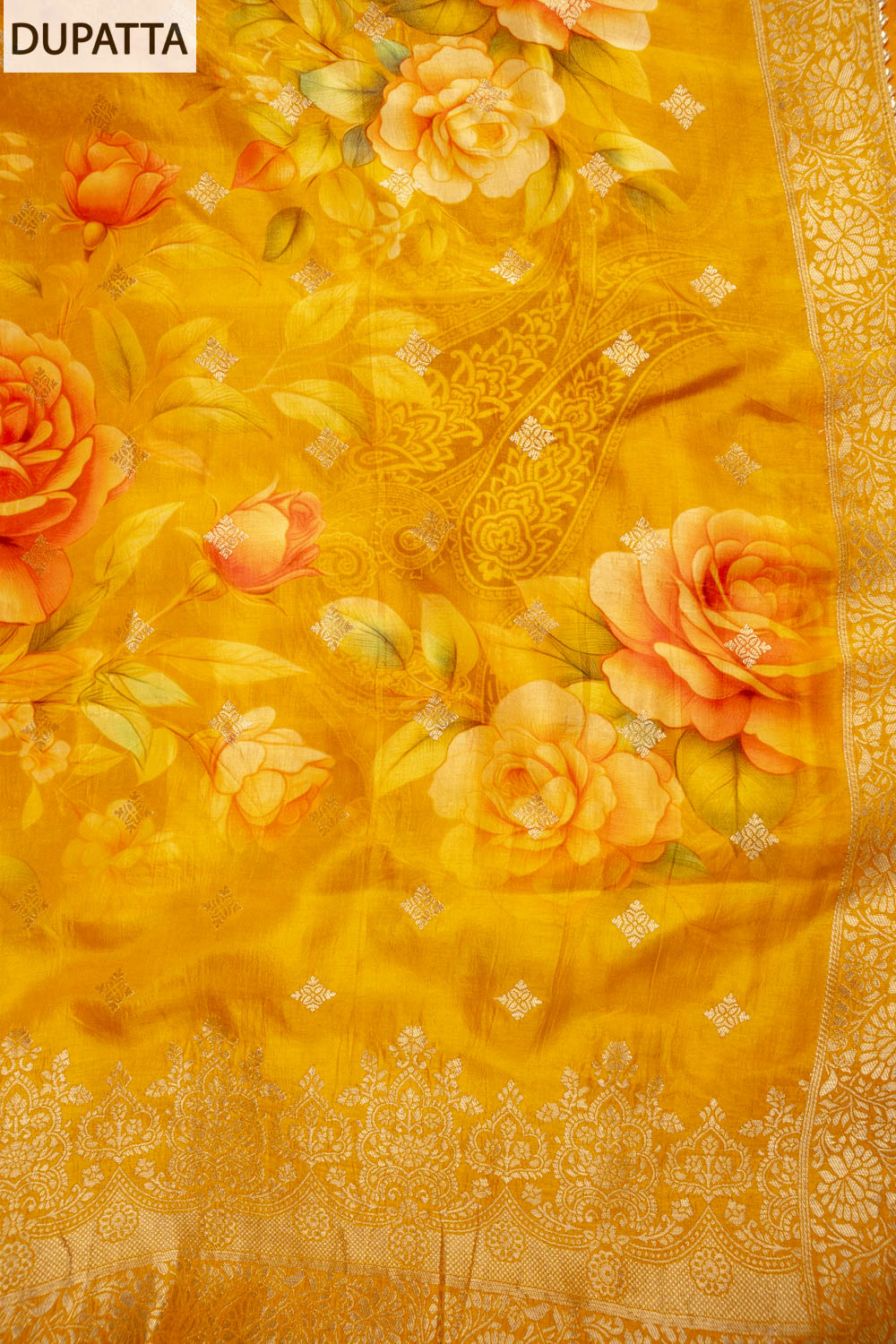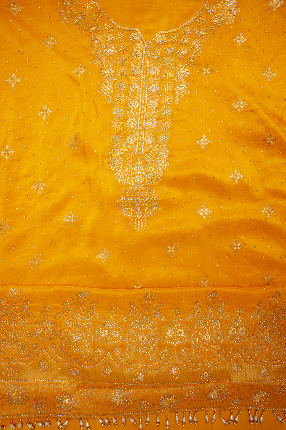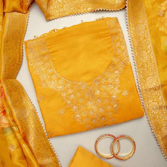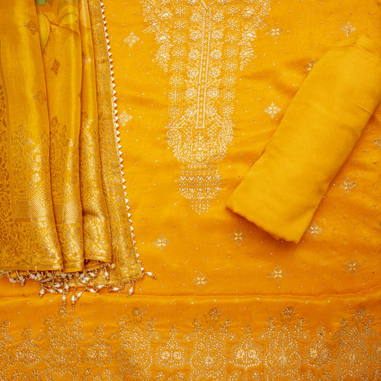 Panna Sunshine Charm Mustard Crepe Unstitched Salwar Kameez With Crepe Dupatta