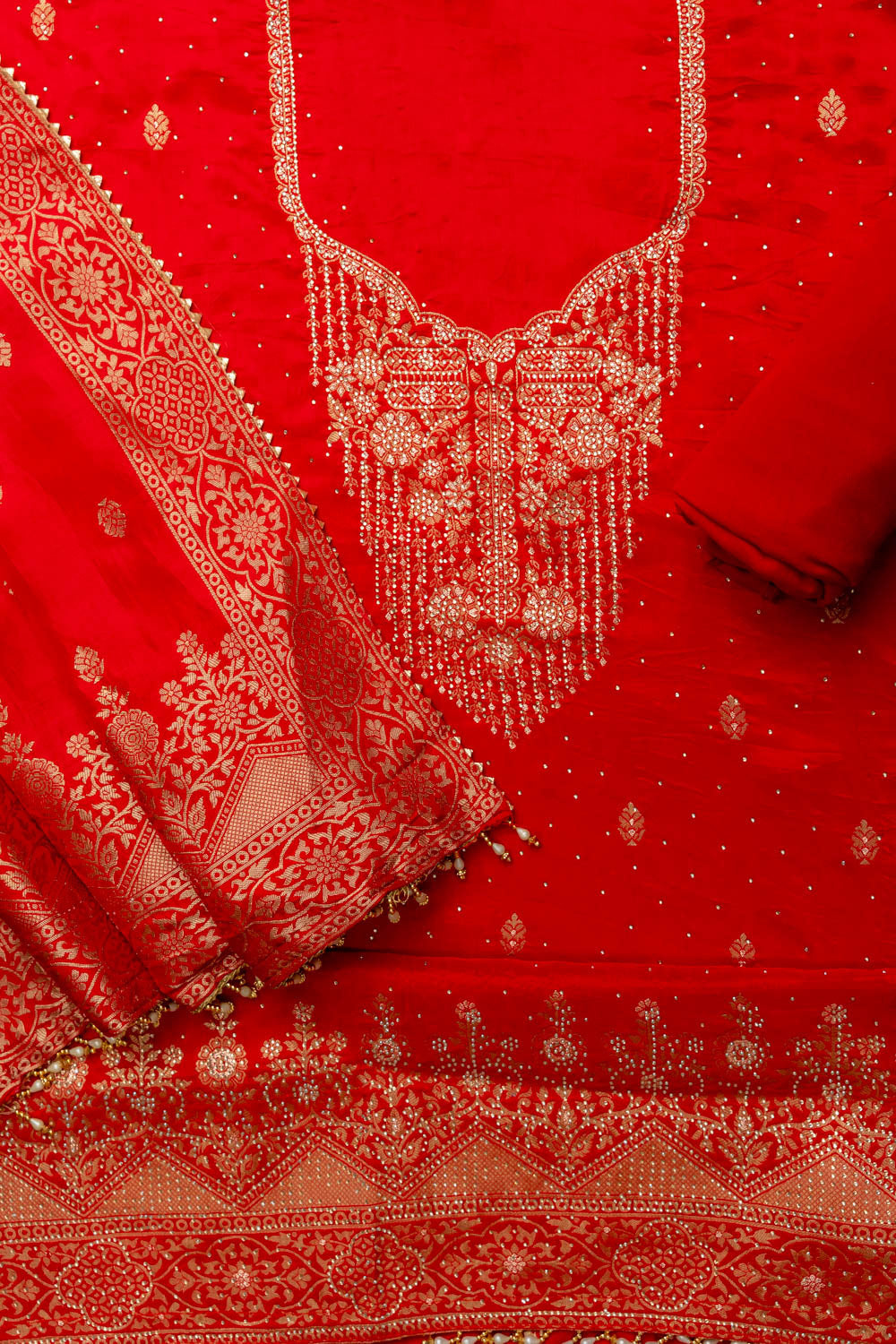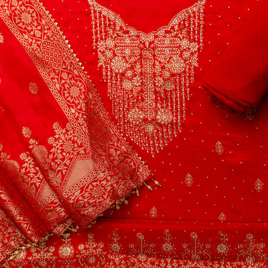 Panna Grace Redefined Red Crepe Unstitched Salwar Kameez With Crepe Dupatta