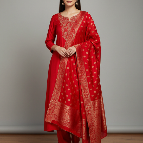 Redefine elegance with this stunning Crepe Unstitched Suit Set, crafted to bring together timeless tradition and contemporary charm. The soft, flowy crepe fabric offers a refined drape and effortless comfort, making it perfect for festive and occasion wear.