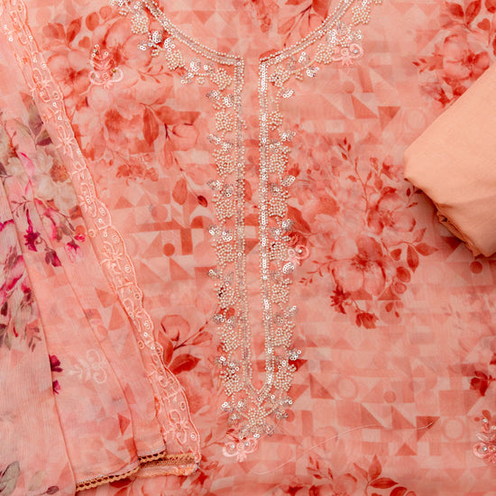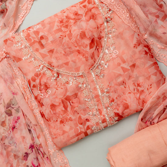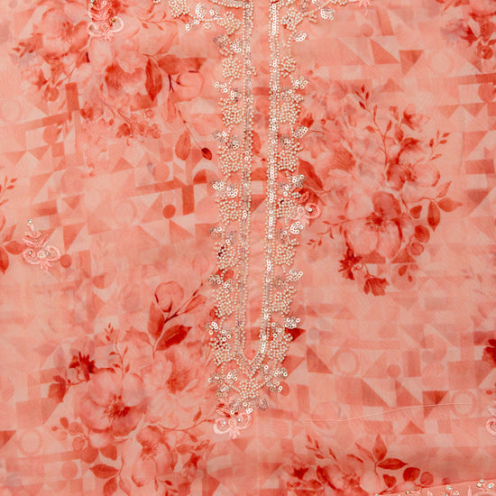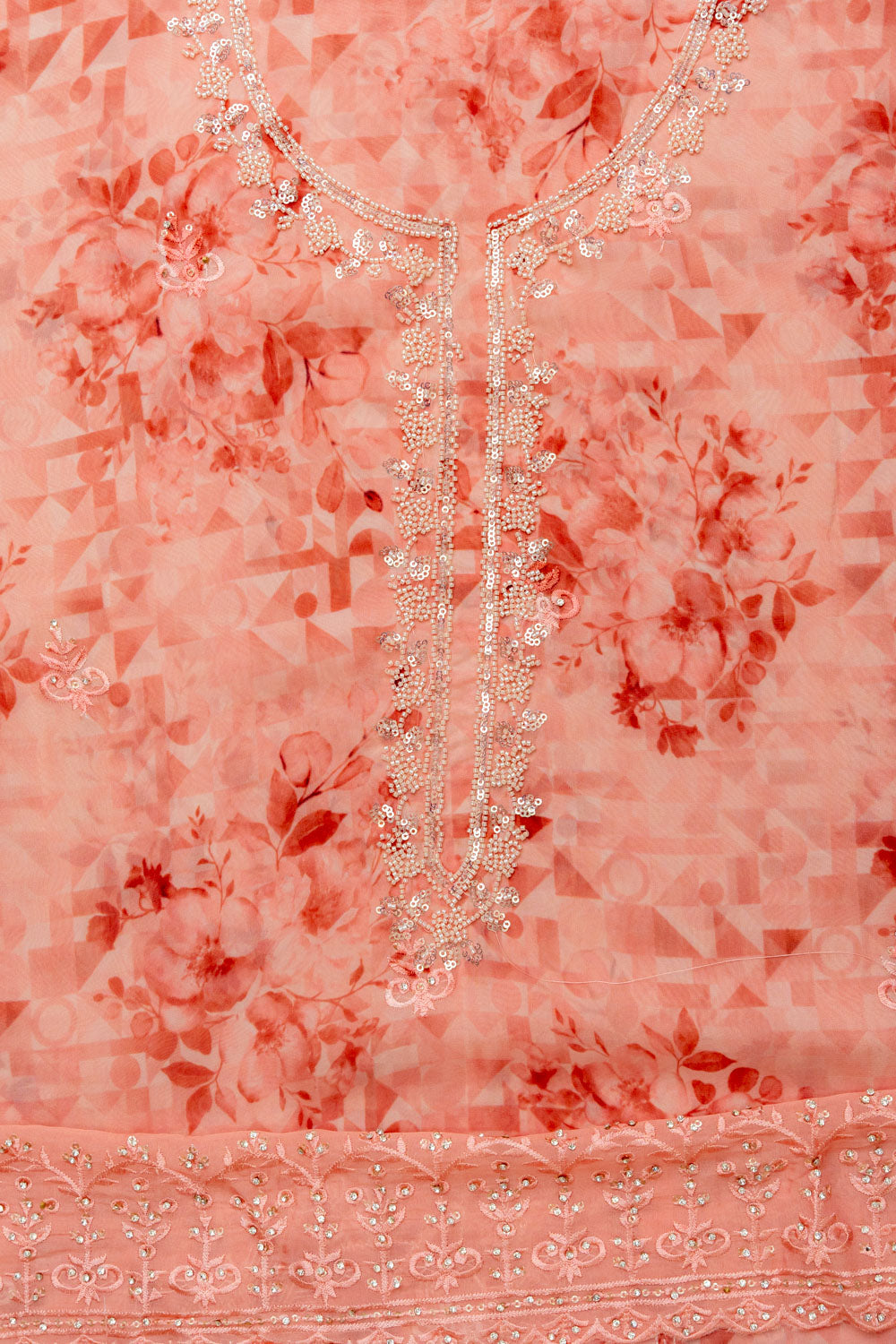 Panna Graceful Flow Peach Georgette Unstitched Salwar Kameez With Georgette Floral Dupatta