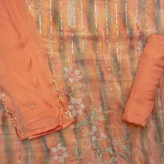 Step into contemporary elegance with this unstitched Georgette suit, crafted to capture the perfect blend of grace and glamour. The lightweight and flowy Georgette fabric ensures effortless draping and comfort