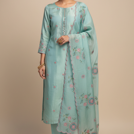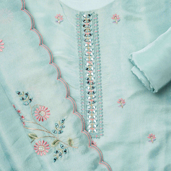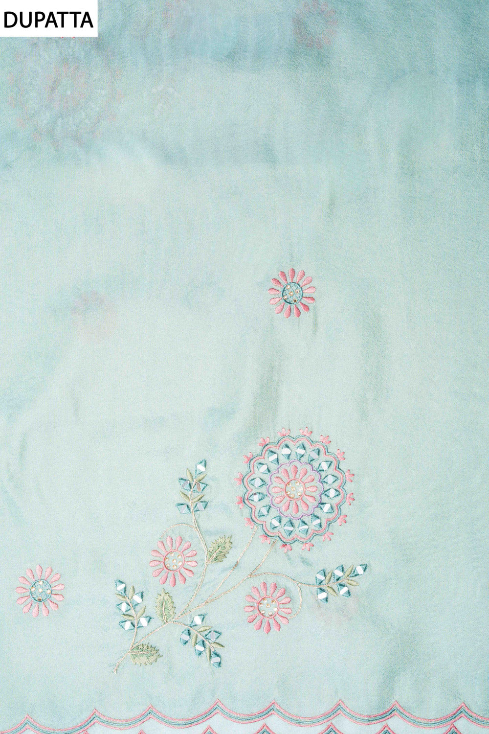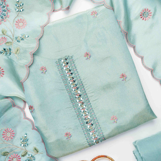 Panna Sky Blue Crepe Tissue Unstitched Salwar Suit With Tissue Dupatta