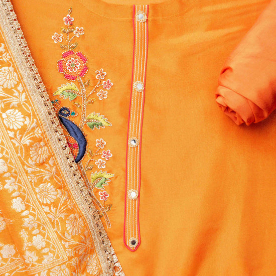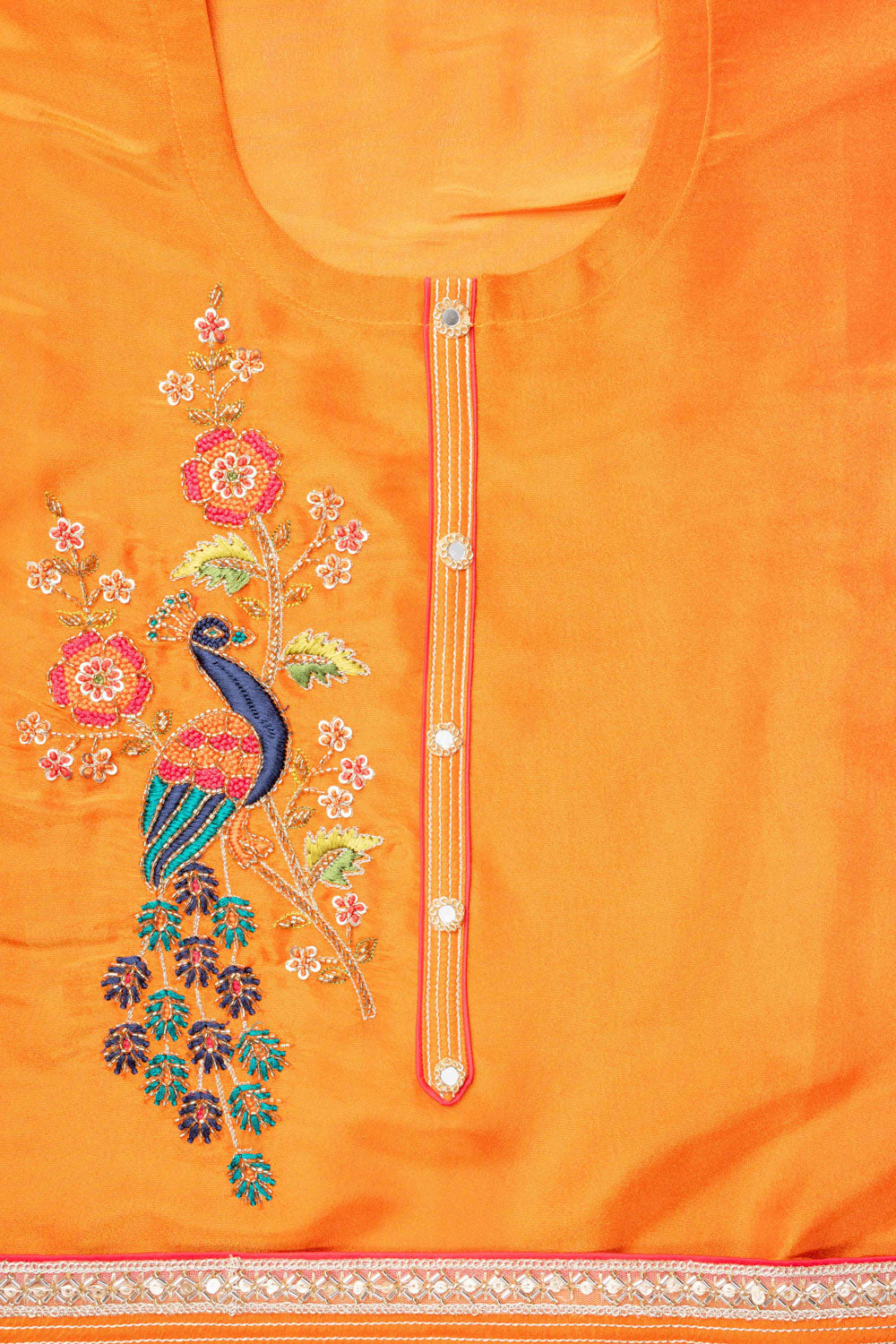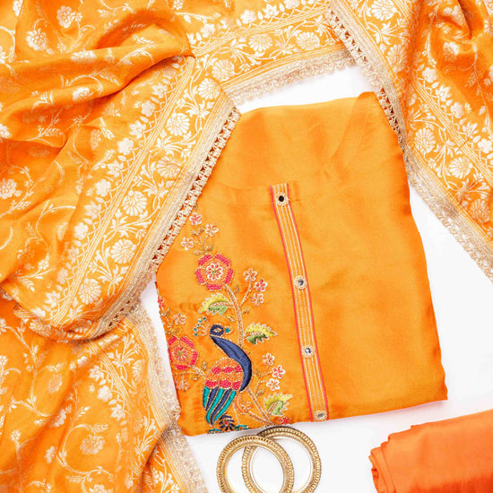 Panna Orange Crepe Tissue Unstitched Salwar Suit With Tissue Dupatta