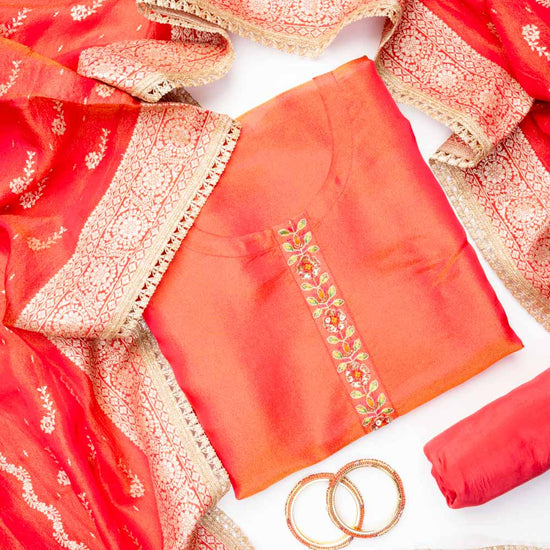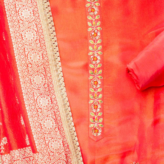 Crafted with premium Crepe Tissue, this suit set showcases Cutdana, Sequence, Woven Zari & Zari Threadwork and is ideal for Formal Occasion. Its Color Variations and tailoring options make it a wardrobe staple. and maintain its quality with Dry Wash / Dry Clean.