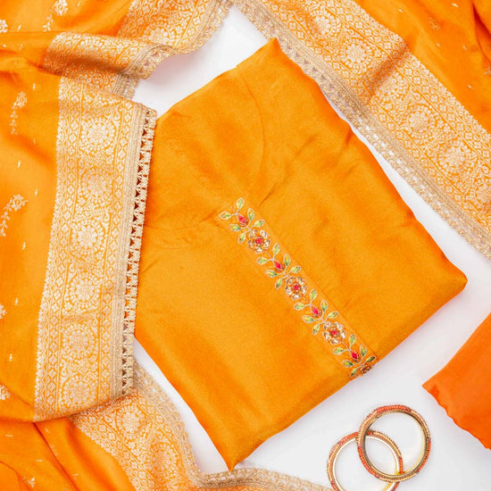 Rust Crepe Tissue Unstitched Salwar Suit With Tissue Dupatta – The Panna Shop