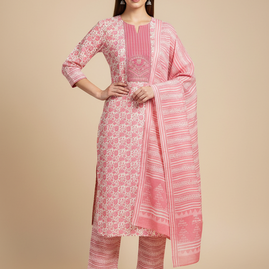 Panna Gajari Cotton Unstitched Salwar Suit With Cotton Dupatta