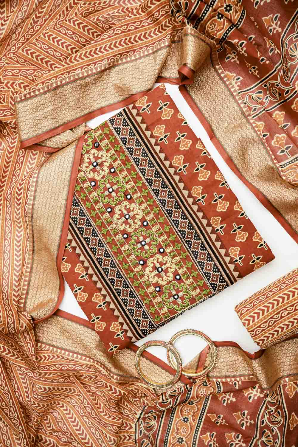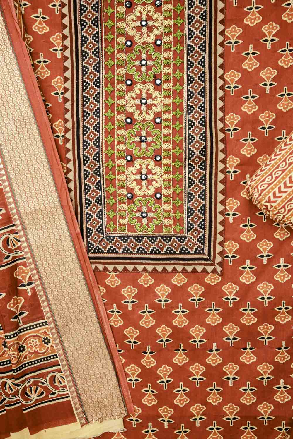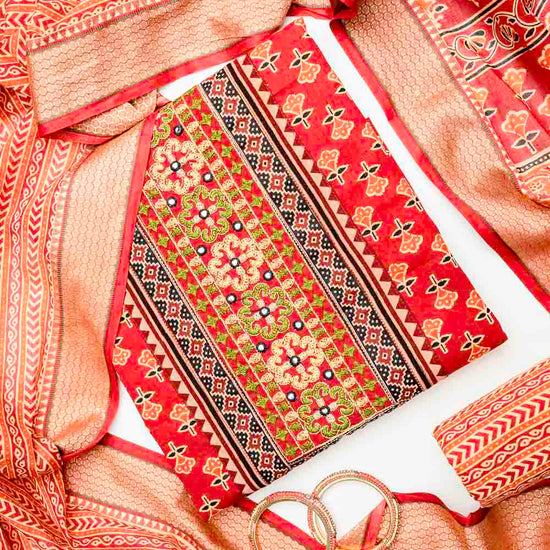 Panna Maroon Cotton Unstitched Salwar Suit With Cotton Dupatta