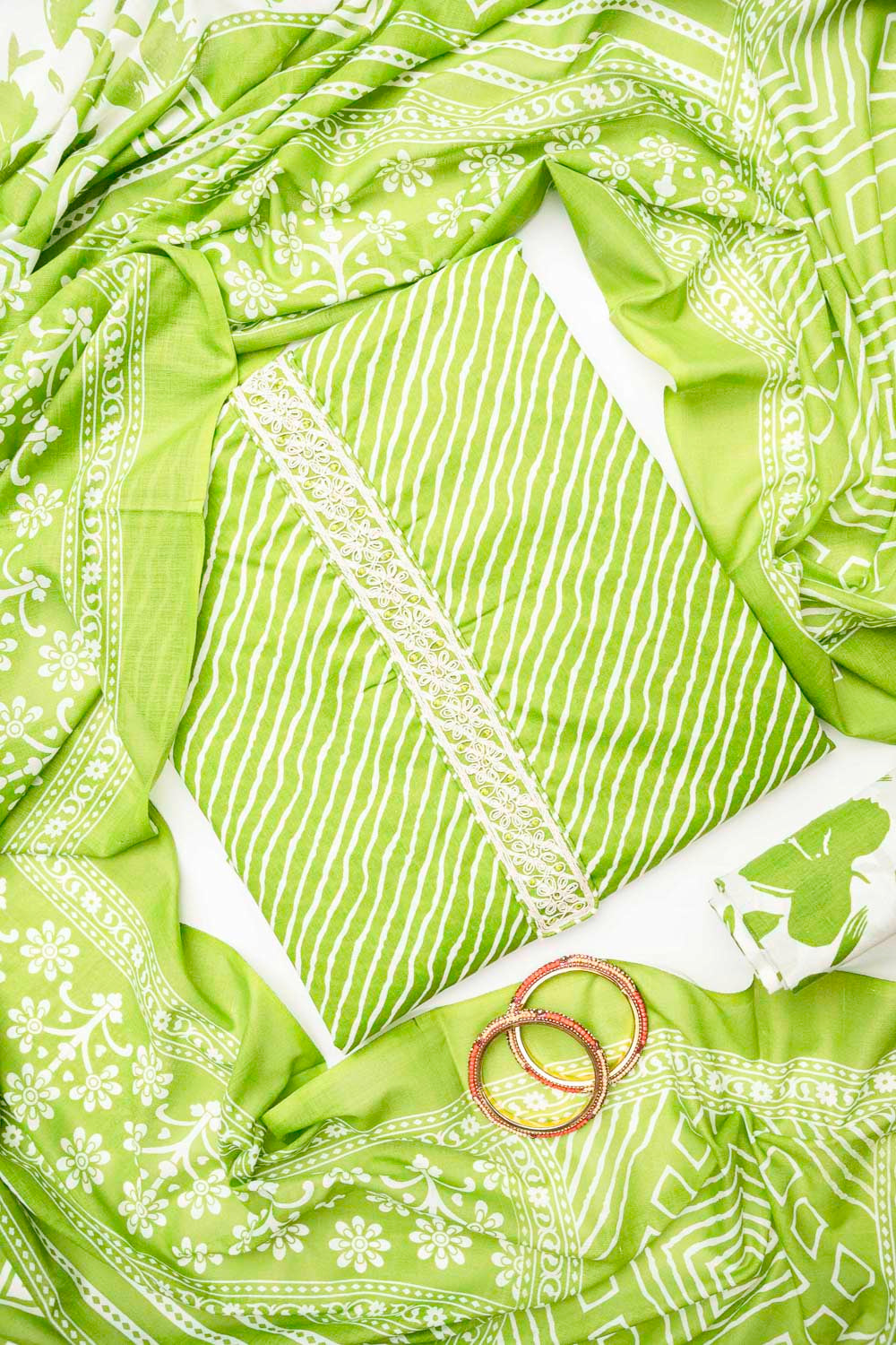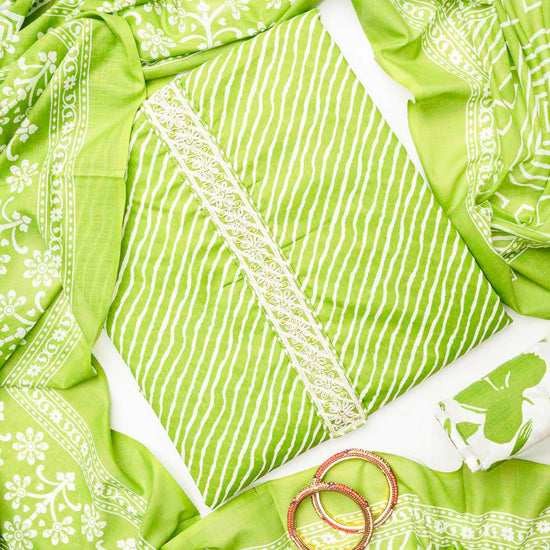 Panna Pista Cotton Unstitched Salwar Suit With Cotton Dupatta