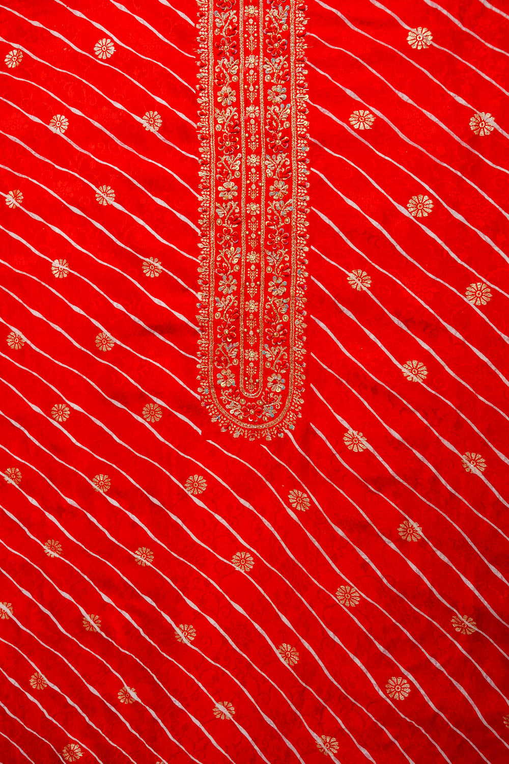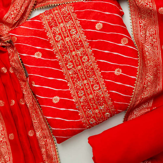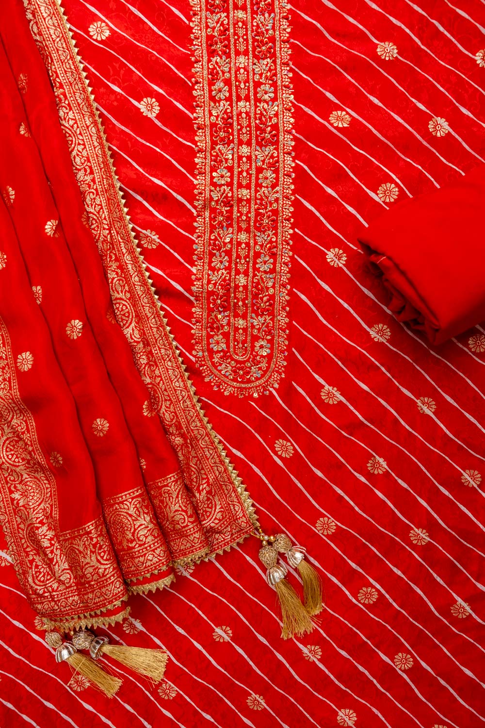 Panna Grace Redefined Red Cotton Unstitched Salwar Kameez With Cotton Dupatta