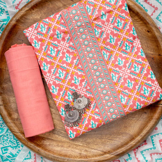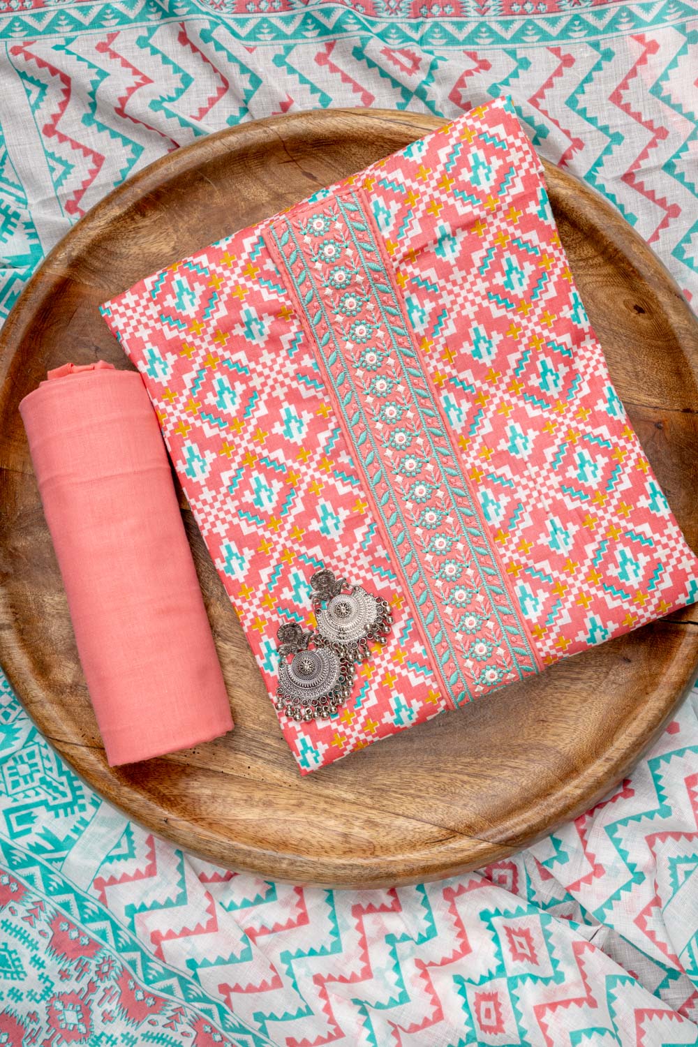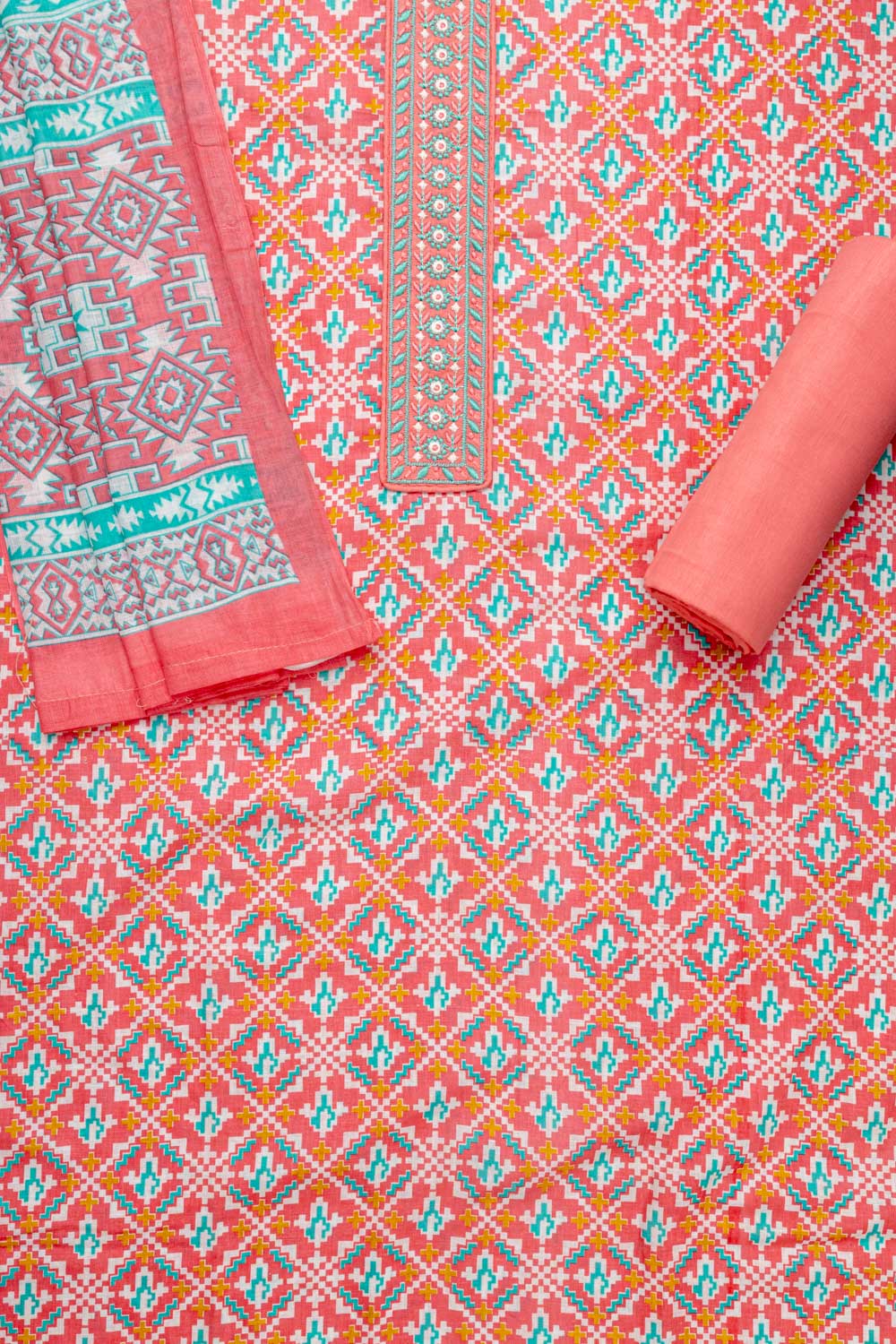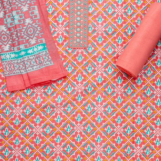Coral Patola Printed Cotton Unstitched Suit With Dupatta – The Panna Shop