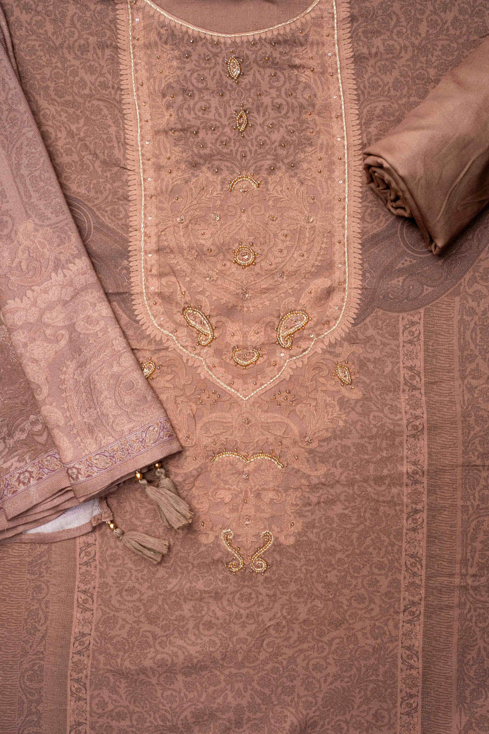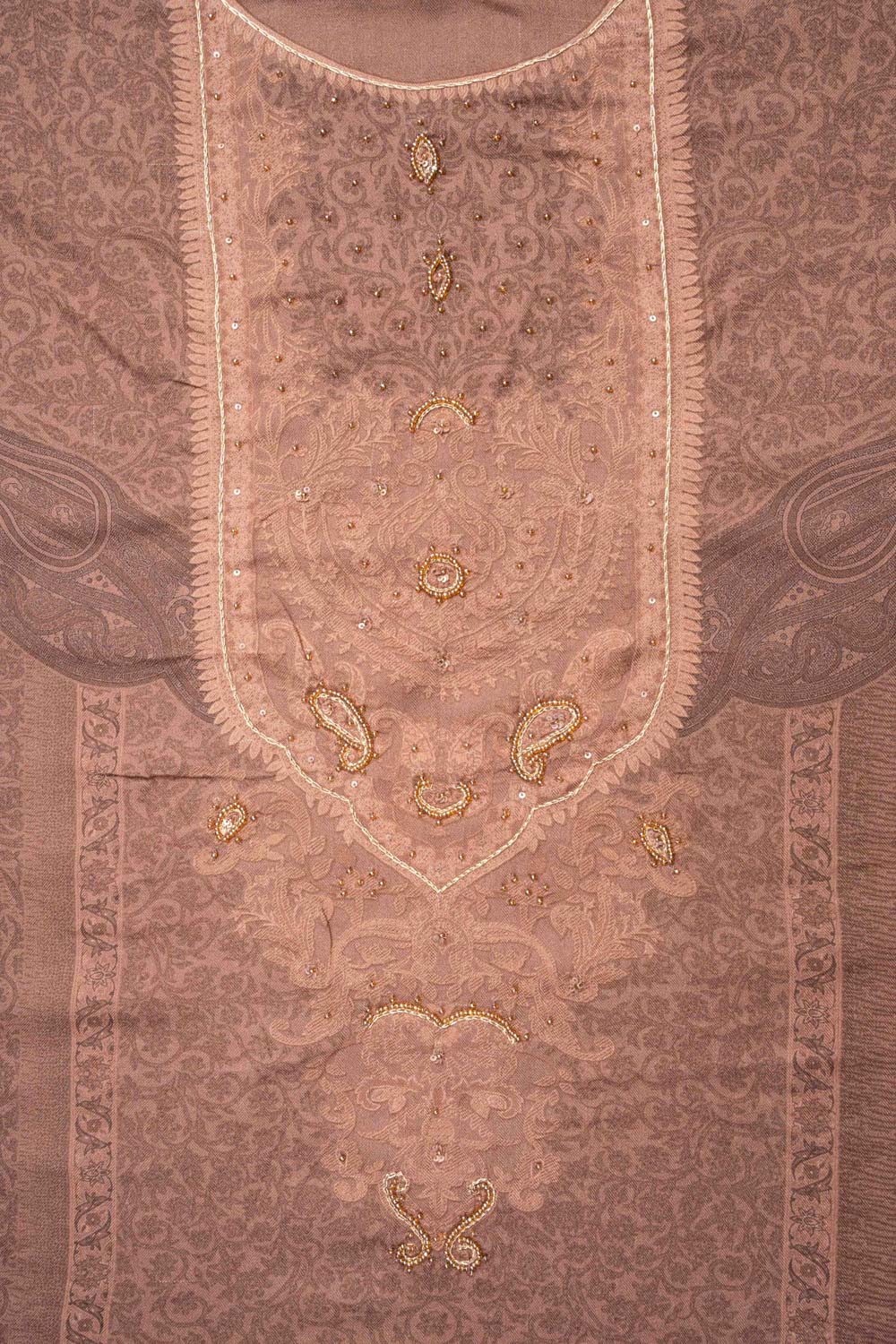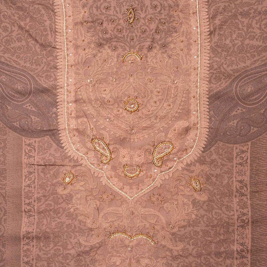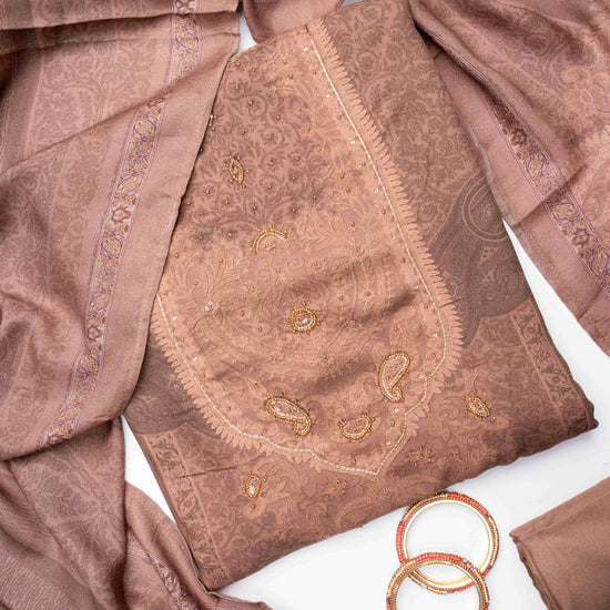 Panna Brown Pashmina Unstitched Salwar Suit With Pashmina Dupatta