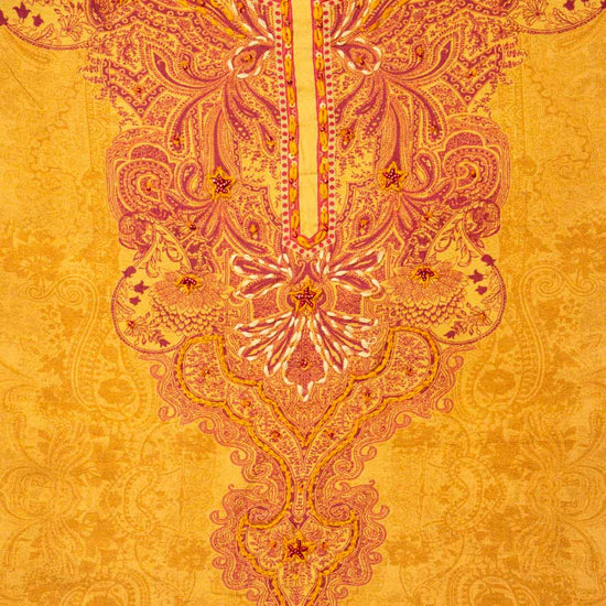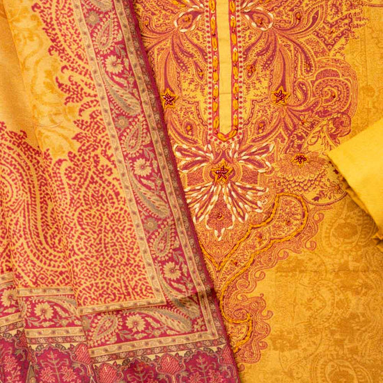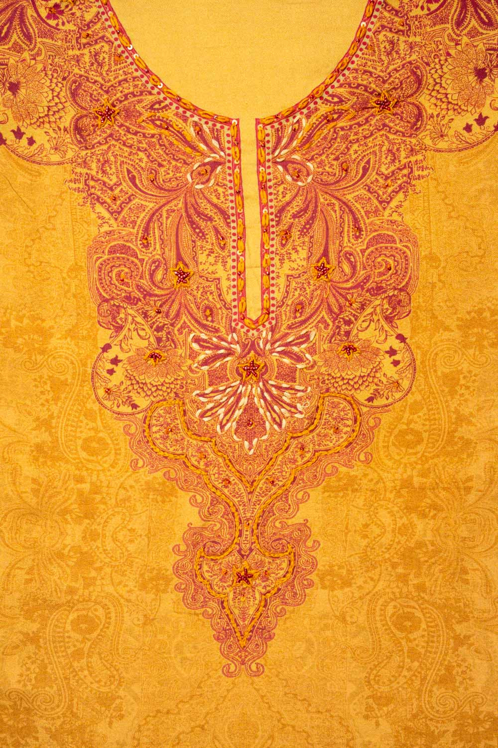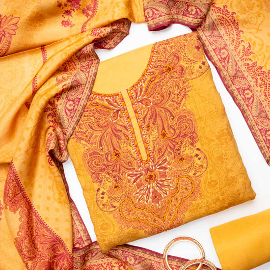 Mustard Pashmina Unstitched Salwar Suit With Pashmina Dupatta