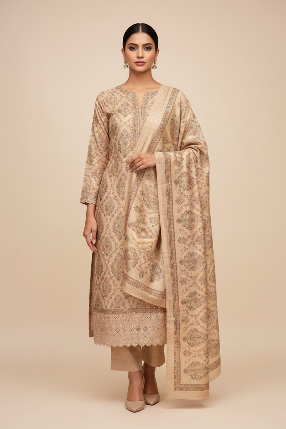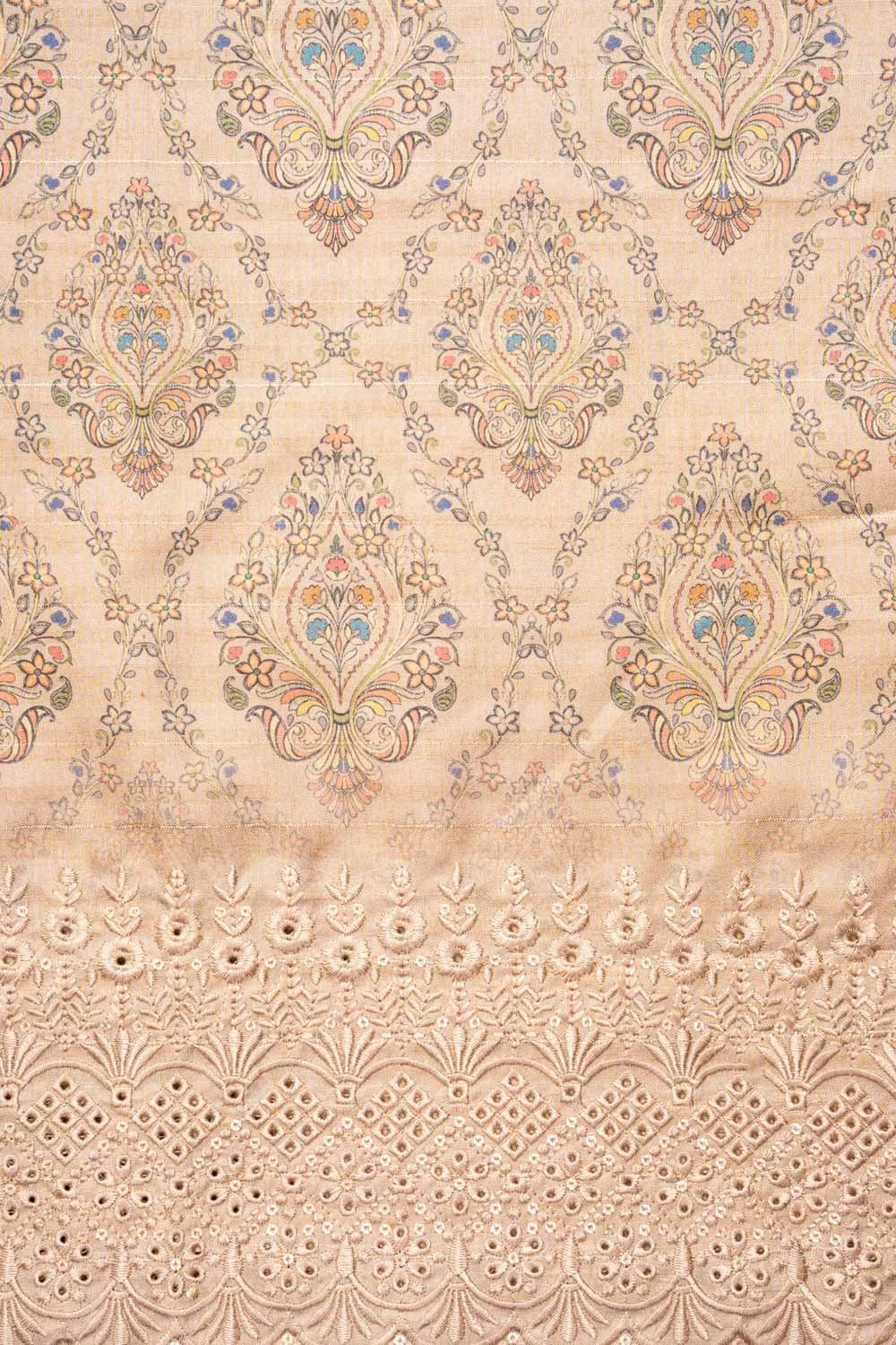 Made from Cotton, this suit with Cutwork, Digital Print, Sequence & Threadwork combines elegance with ease for Formal Occasion. Its Color Variations and tailoring options make it a wardrobe staple. Dry Wash / Dry Clean advised.