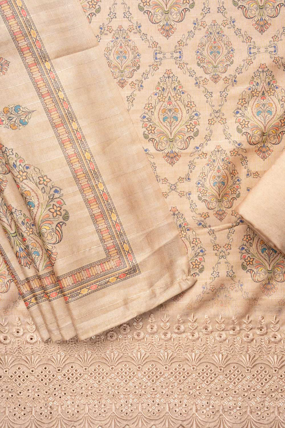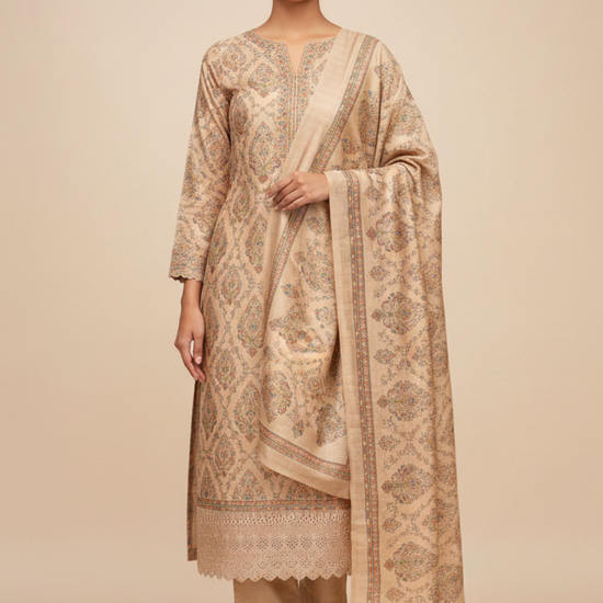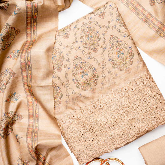 Panna Tussar Cotton Unstitched Salwar Suit With Cotton Dupatta