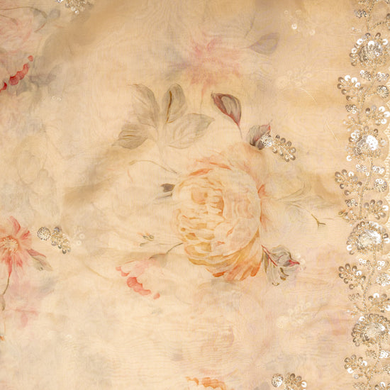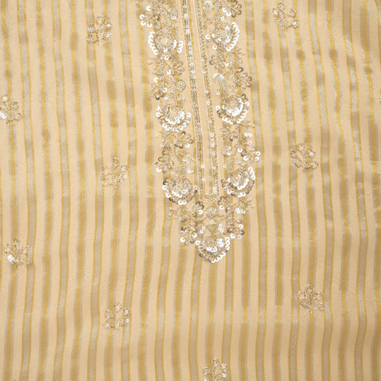 Adorned with intricate Cutdana work, shimmering Sequence accents, delicate Thread embroidery, and elegant Woven Zari patterns, this ensemble captures the essence of understated luxury.