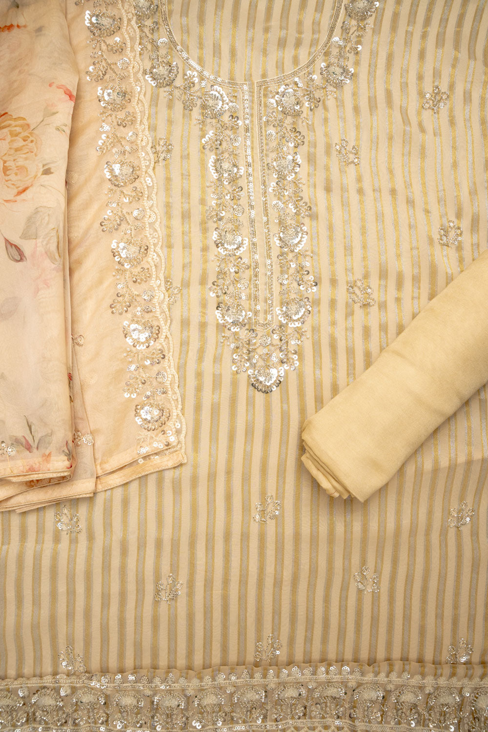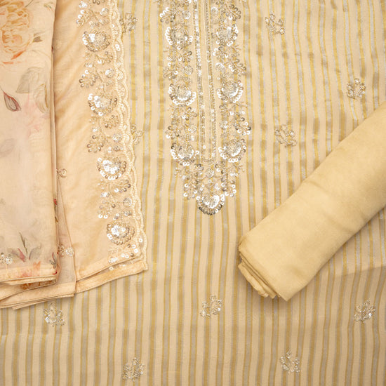 Step into sheer elegance with this exquisite Organza Unstitched Suit Set, a perfect blend of luxury and craftsmanship. Crafted from premium organza fabric, it exudes a soft sheen and graceful flow,