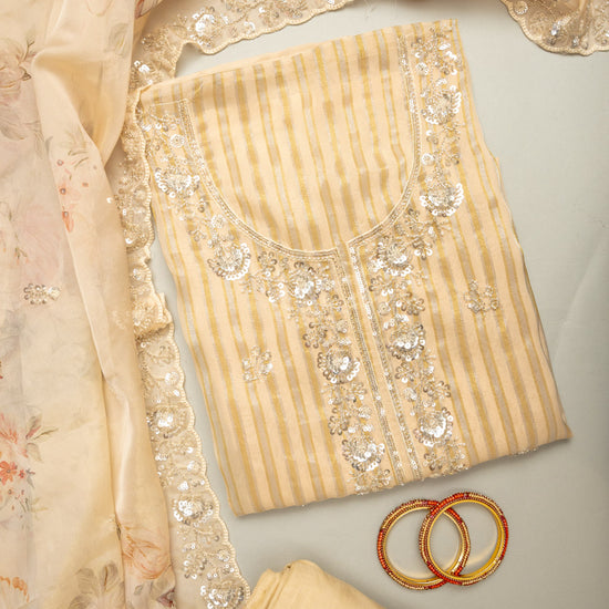 Panna Tussar Organza Unstitched Salwar Kameez With Organza Dupatta
