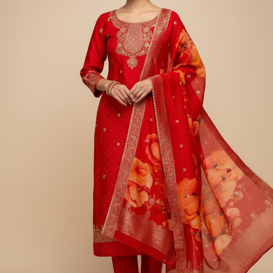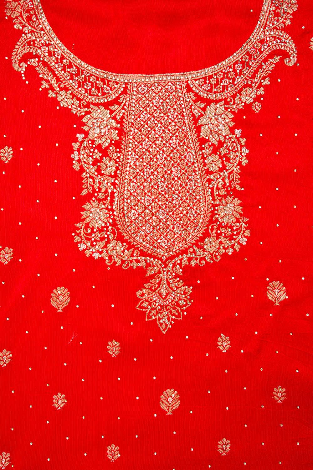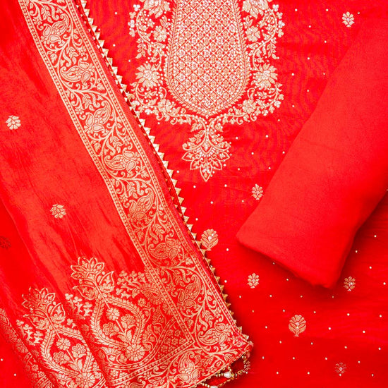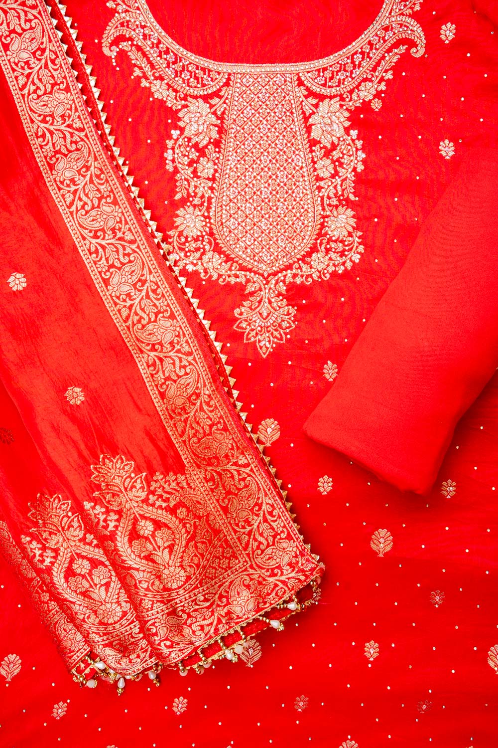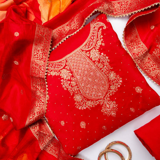 Panna Red Dola Unstitched Salwar Suit With Dola Dupatta