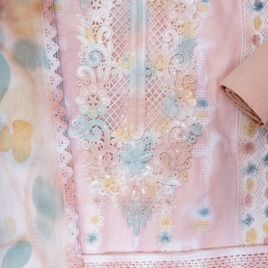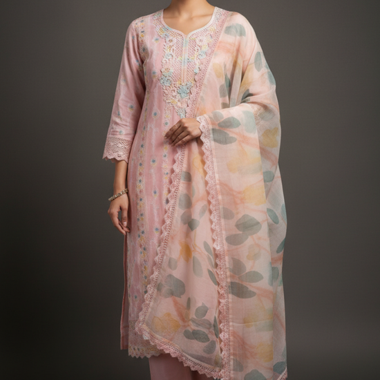 Made from Cotton, this suit with Cutwork, Digital print, Sequence, Swarovski & Threadwork combines elegance with ease for Informal Occasion. The Color Variations and tailoring options offer unparalleled versatility. Dry Wash / Dry Clean advised.