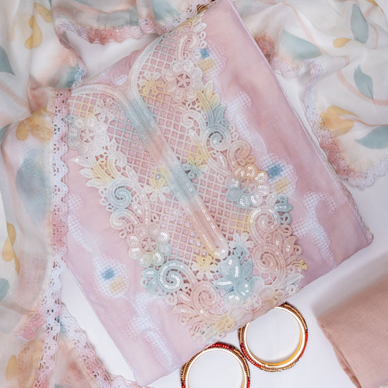 Panna Peach Cotton Unstitched Salwar Suit With Chiffon Dupatta