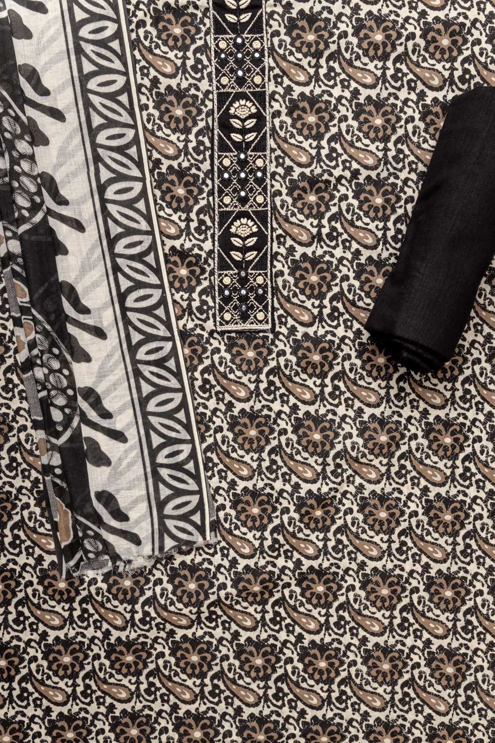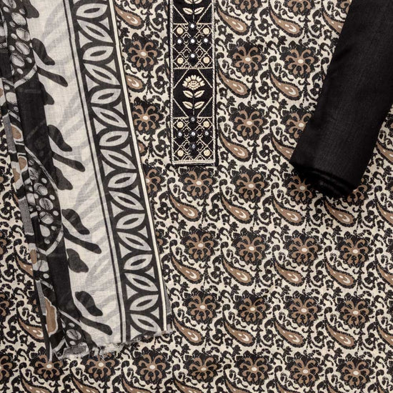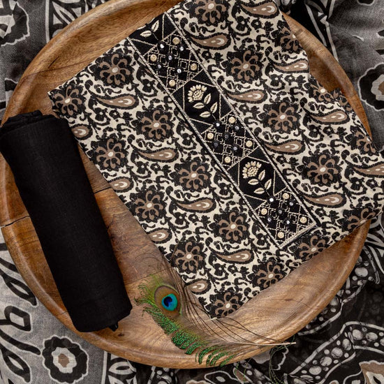 Panna Black Digital Printed Cotton Unstitched Suit With Dupatta