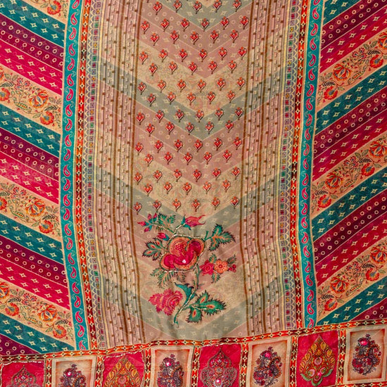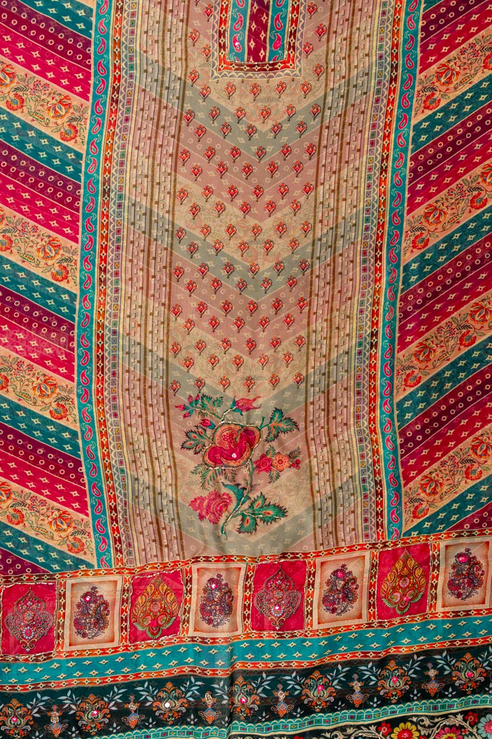 Made from Organza, this unstitch suit with Cutdana, Digital Print, Mirror Sheet & Threadwork combines elegance with ease for Informal Occasion. Its Color Variations and tailoring options make it a wardrobe staple. Dry Wash / Dry Clean advised.