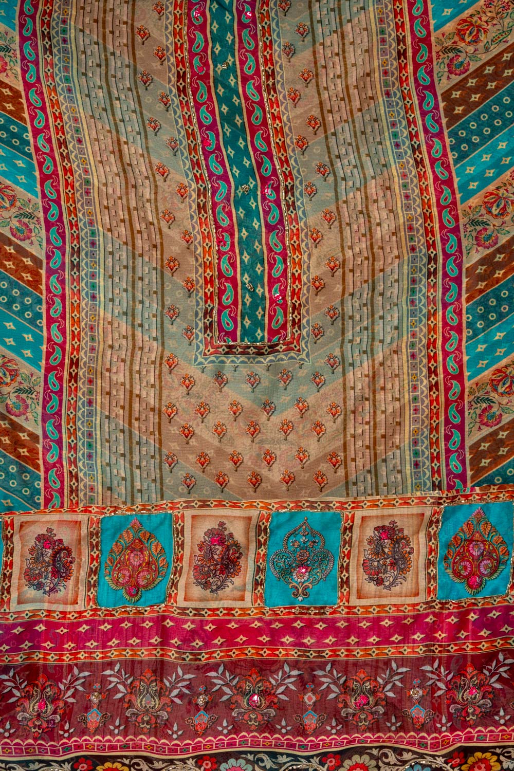 Made from Organza, this unstitch suit with Cutdana, Digital Print, Mirror Sheet & Threadwork combines elegance with ease for Informal Occasion. Its Color Variations and tailoring options make it a wardrobe staple. Dry Wash / Dry Clean advised.