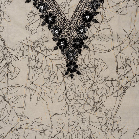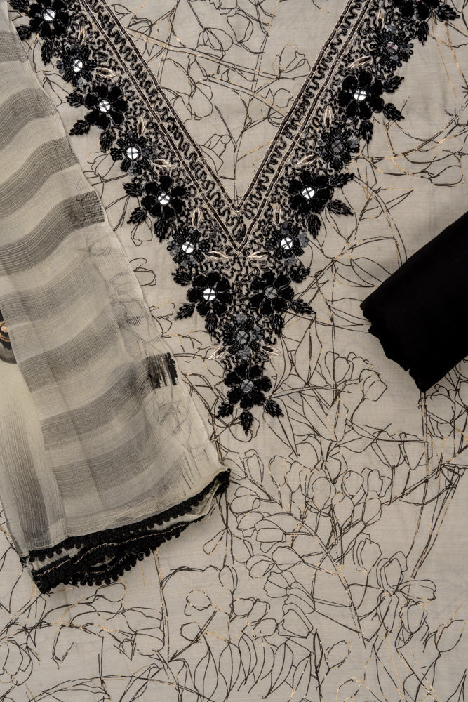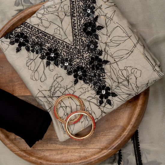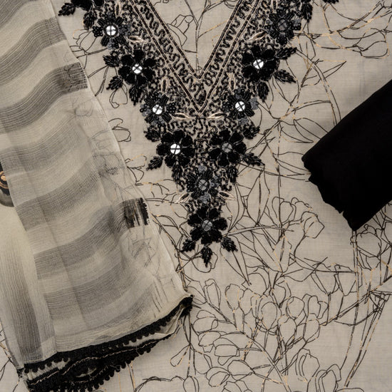Panna Off White Sequence, Threadwork & Digital Printed Cotton Unstitched Salwar Suit With Georgette Dupatta