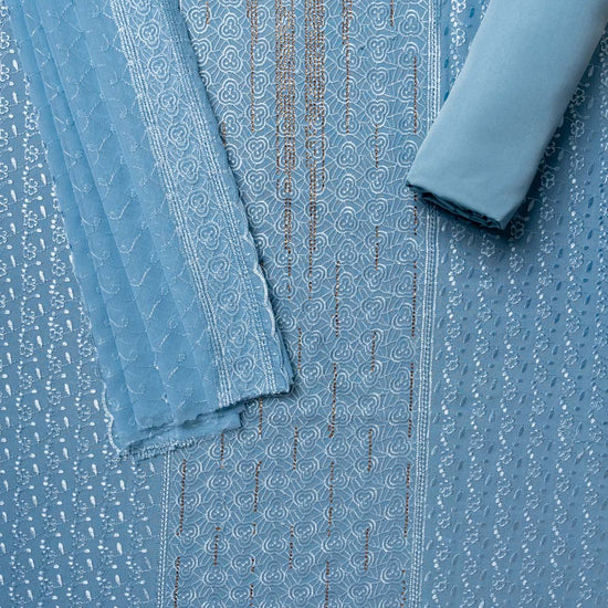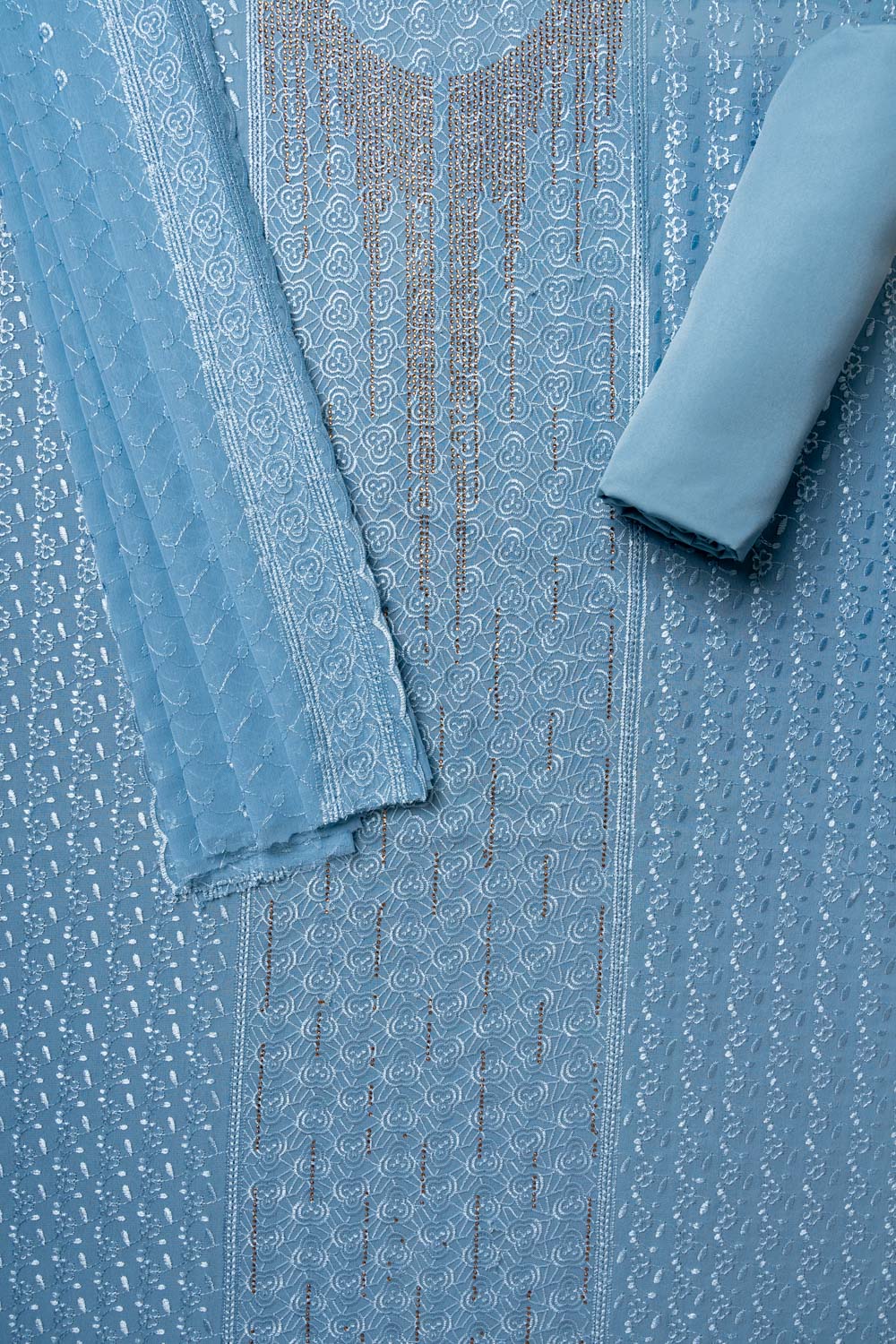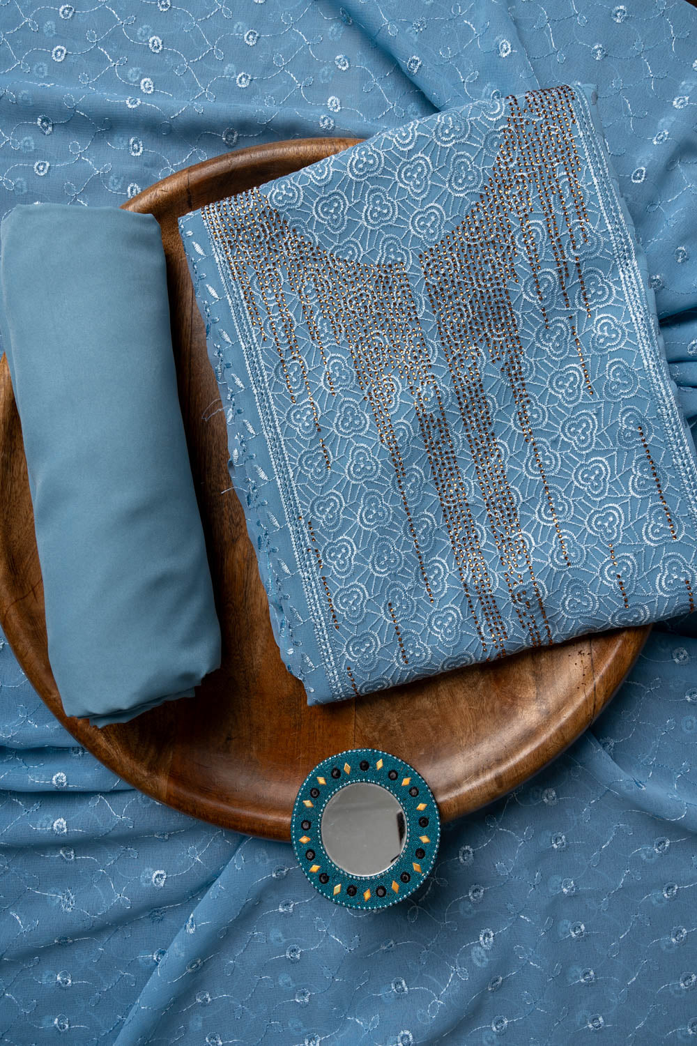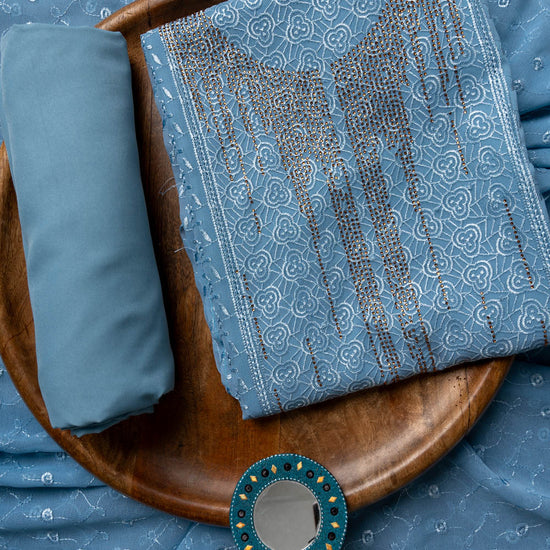 Panna Grey Swarovski & Threadwork Georgette Unstitched Salwar Suit With Georgette Dupatta