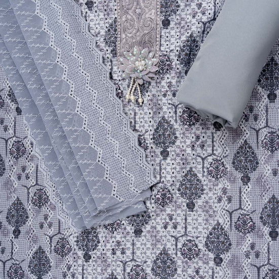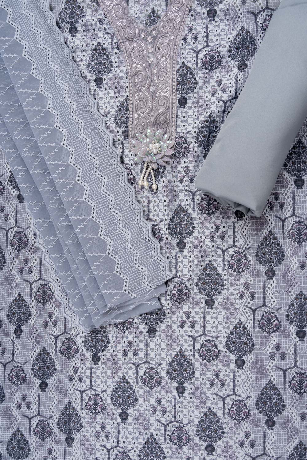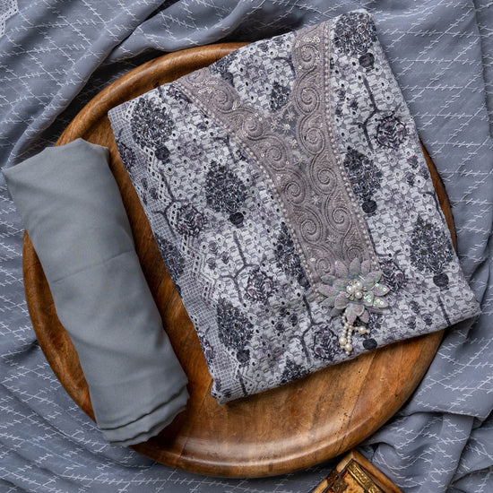Panna Grey Cutwork, Sequence, Threadwork & Digital Printed Georgette Unstitched Salwar Suit With Georgette Dupatta