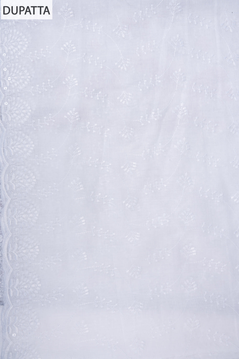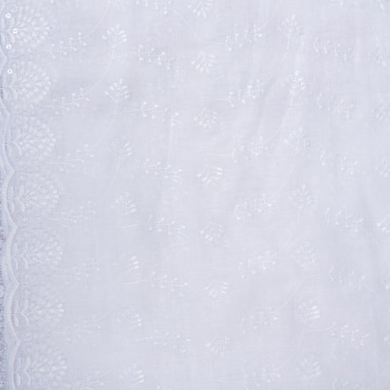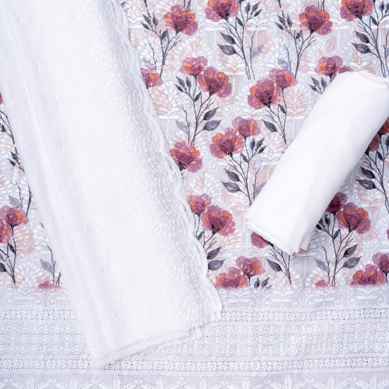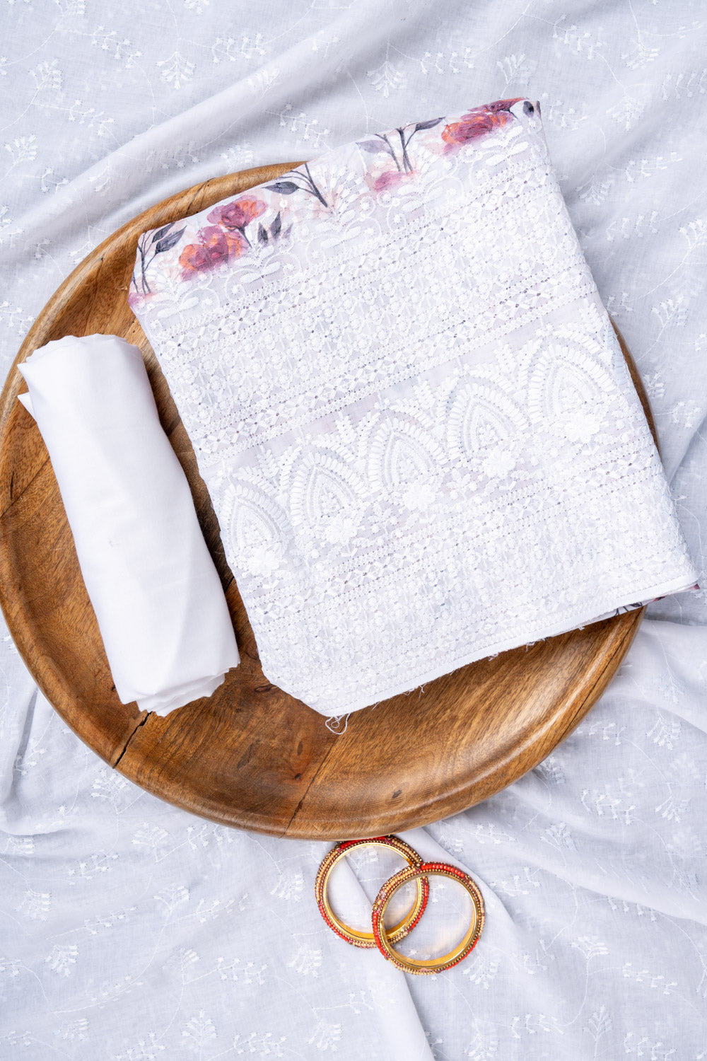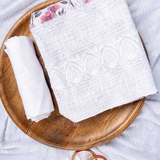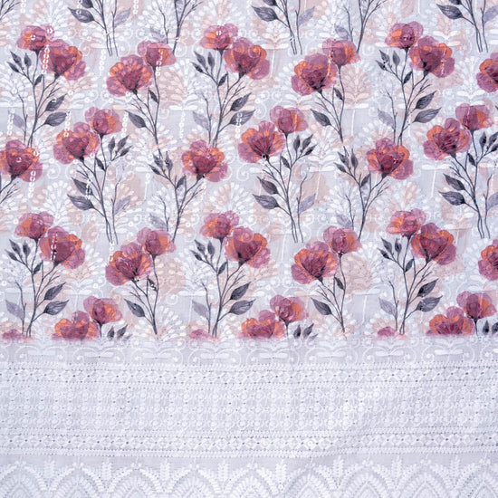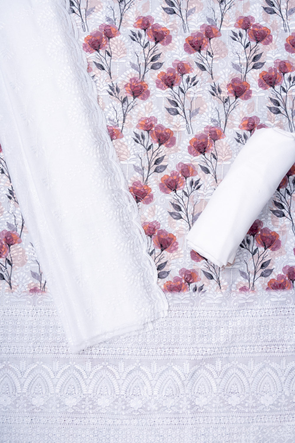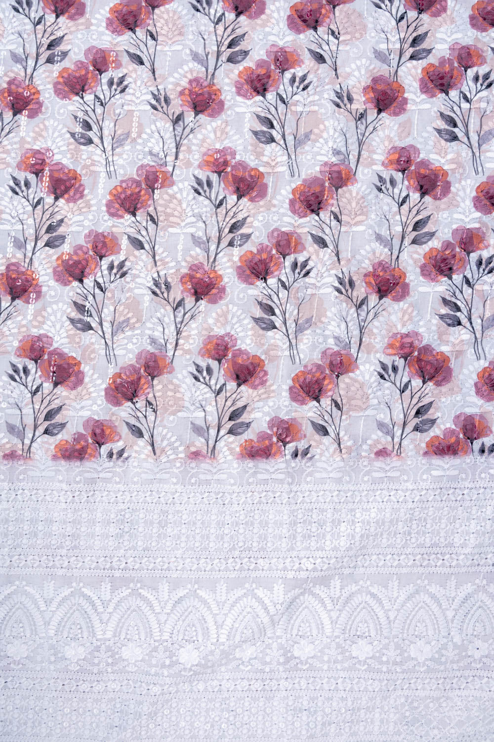 Panna White Gajari Sequence, Threadwork & Floral Printed Cotton Unstitched Salwar Suit With Cotton Dupatta