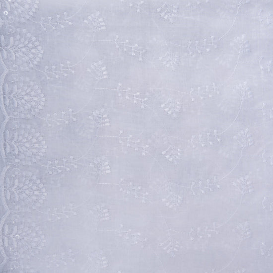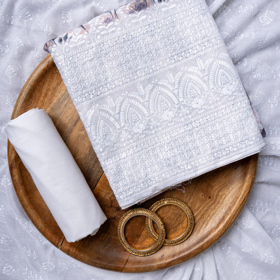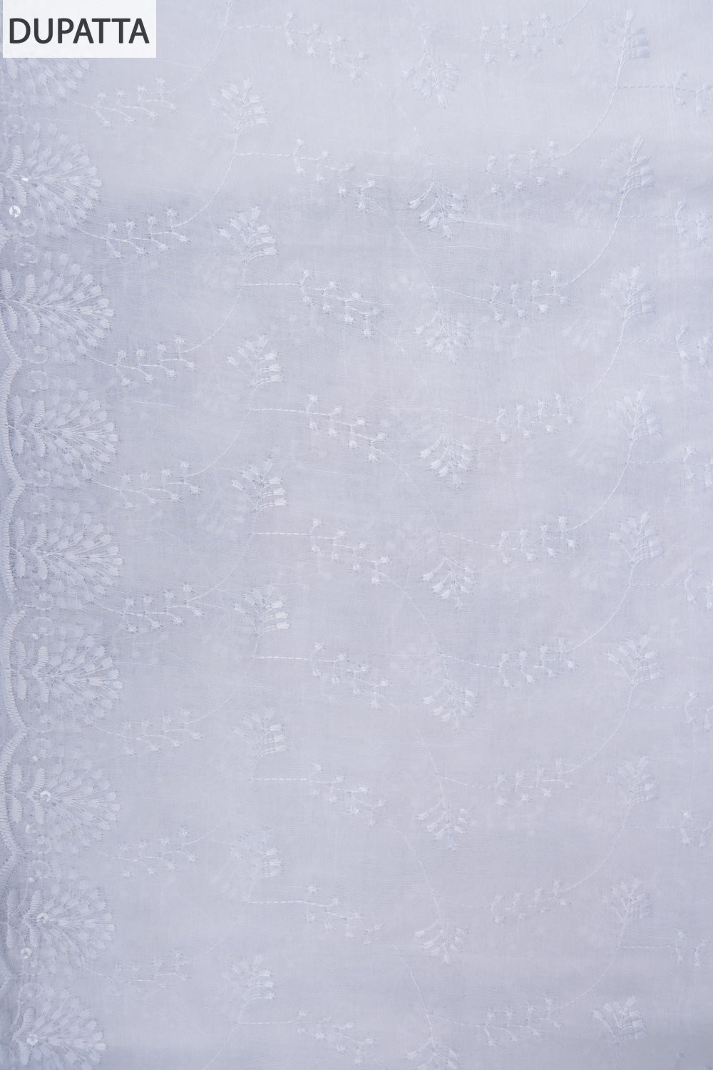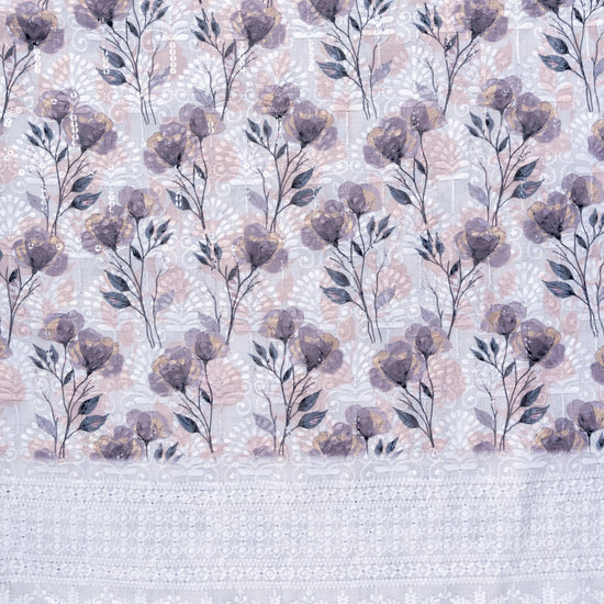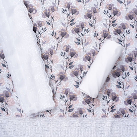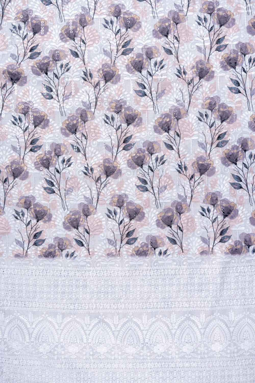 Panna White Grey Sequence, Threadwork & Floral Printed Cotton Unstitched Salwar Suit With Cotton Dupatta