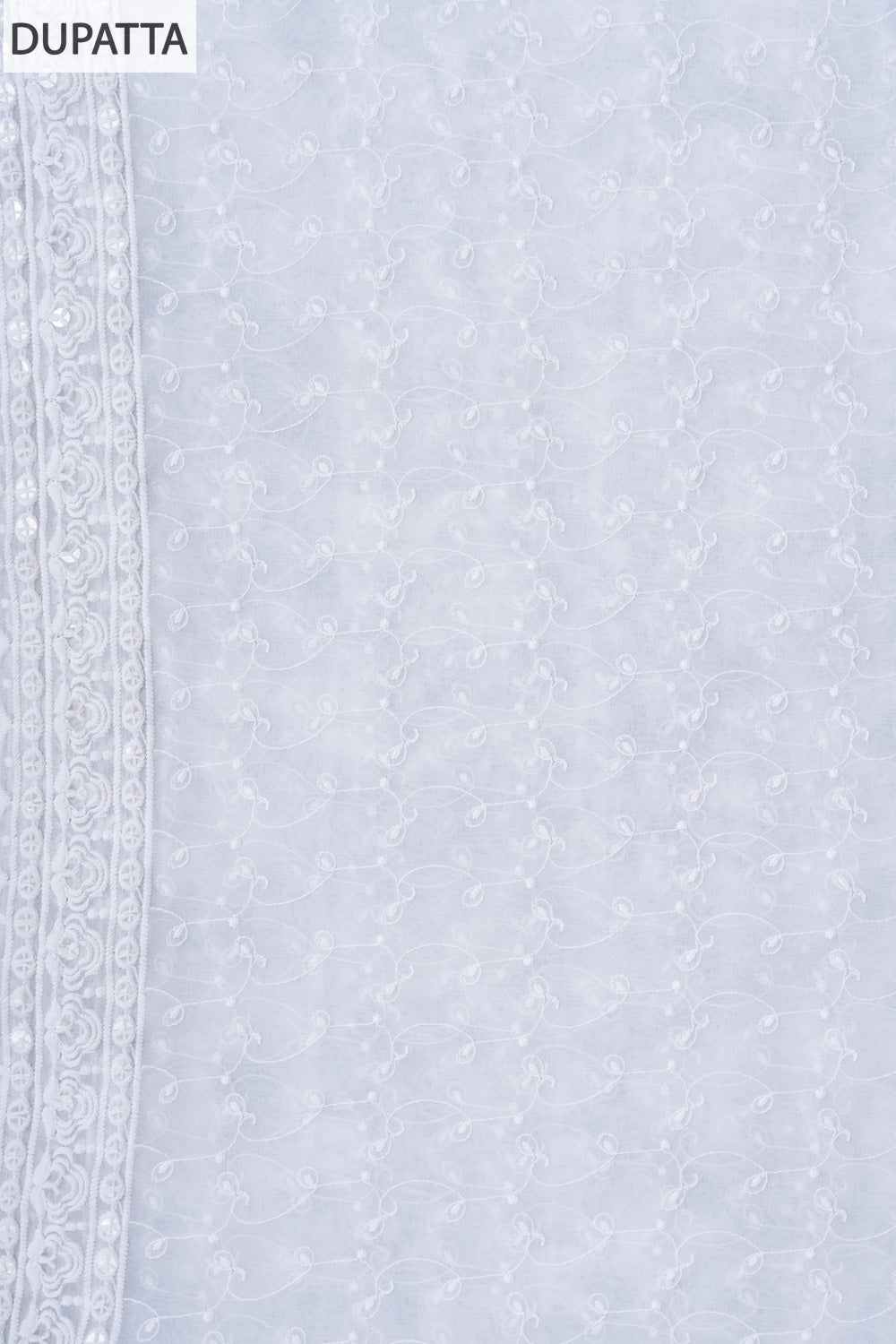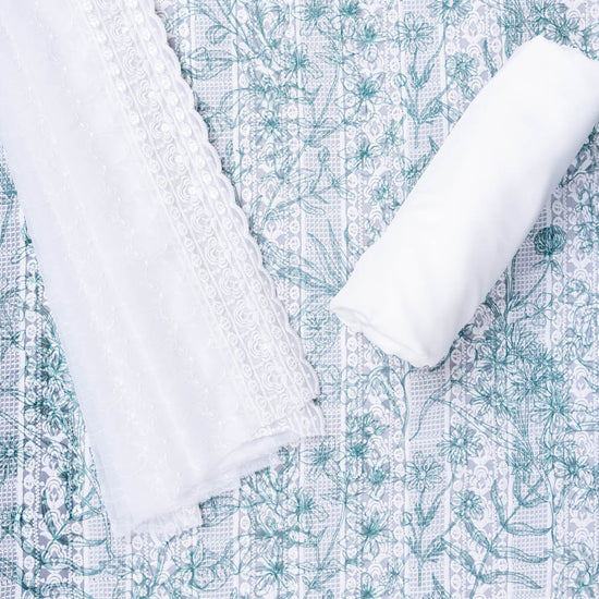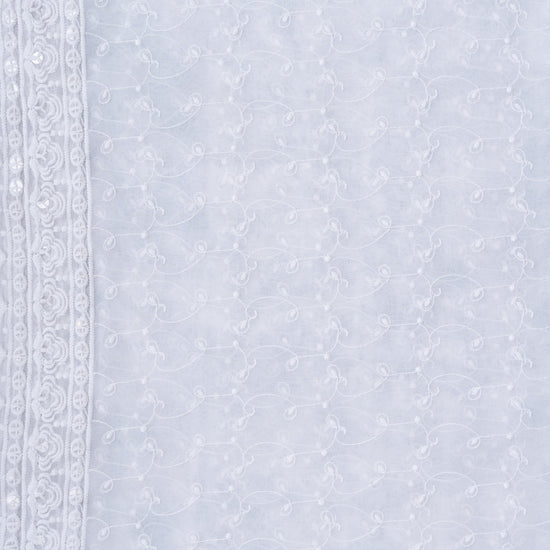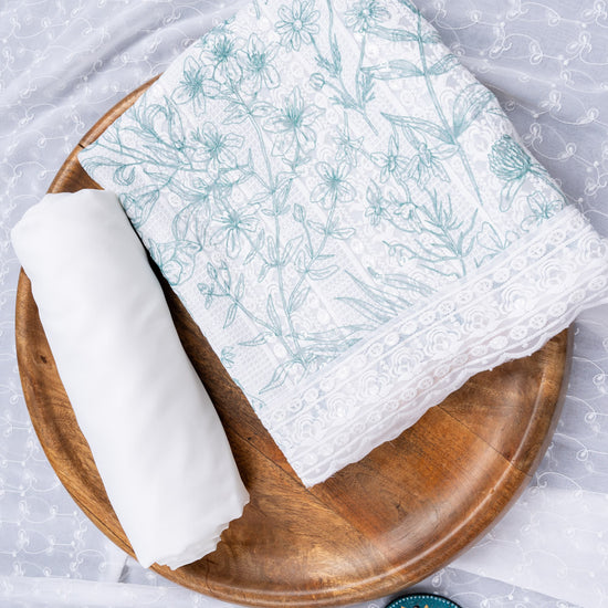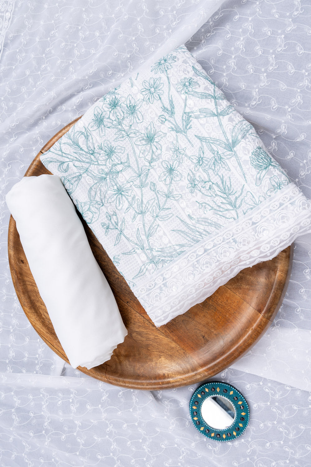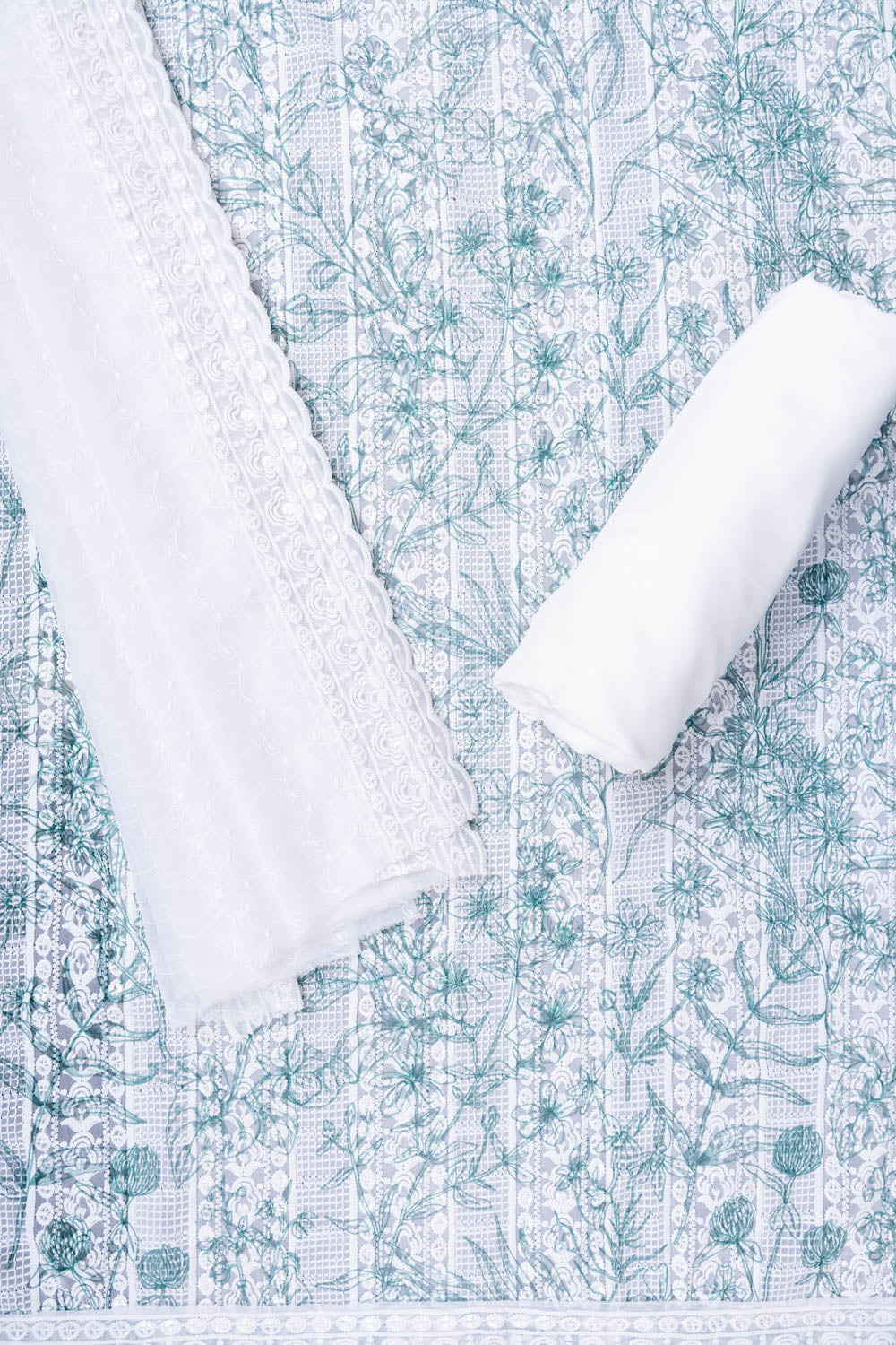Panna White Tea Green Sequence, Threadwork & Floral Printed Georgette Unstitched Salwar Suit With Georgette Dupatta