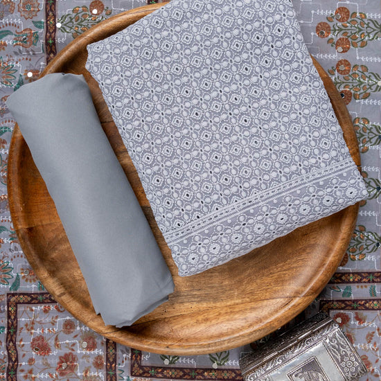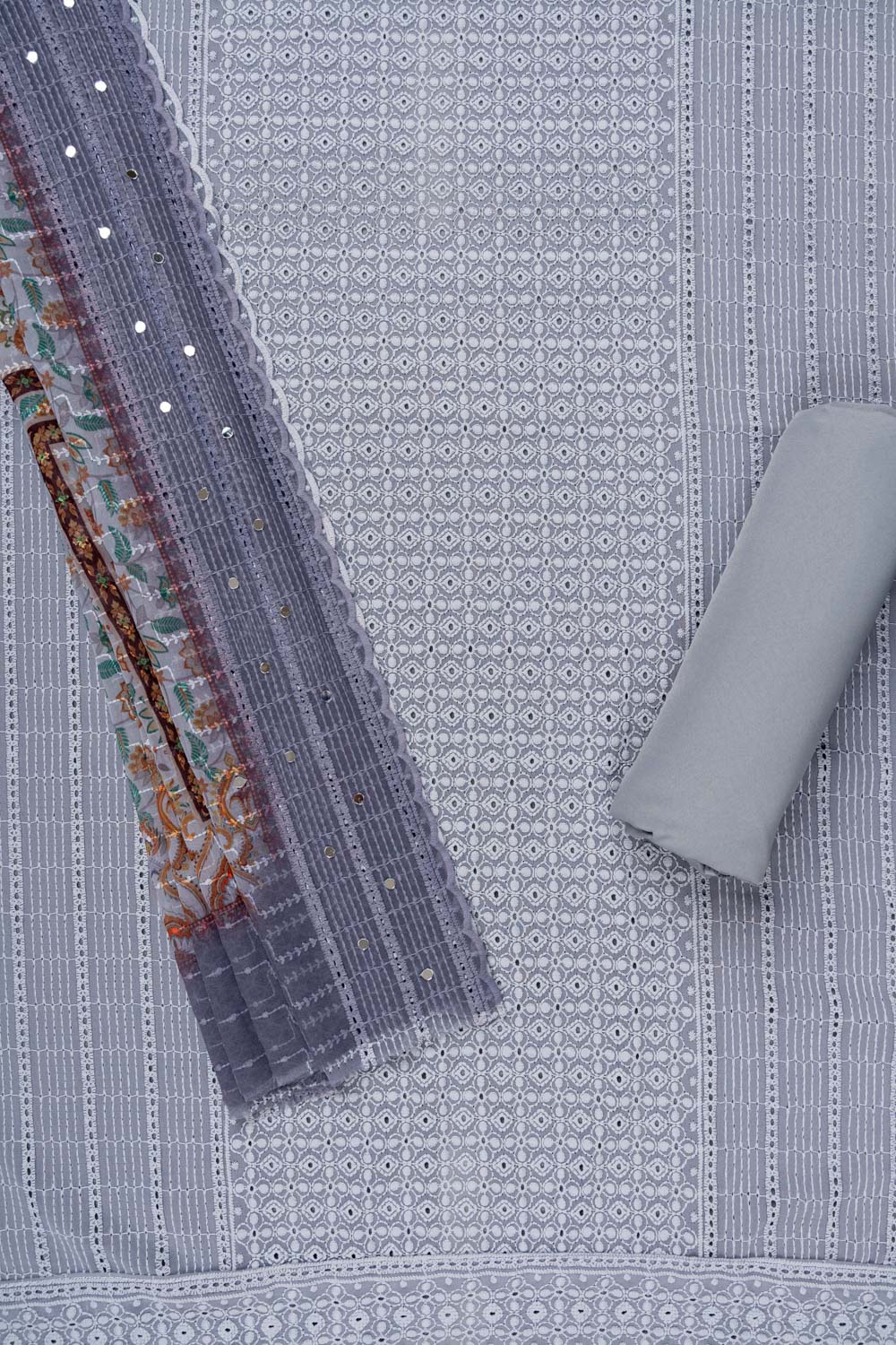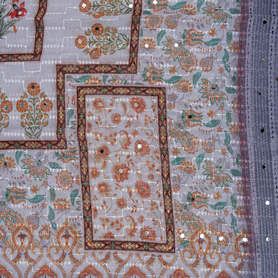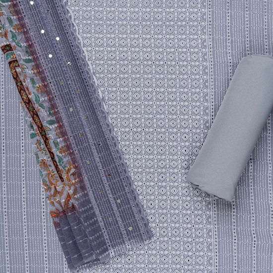 Panna Grey Cutwork, Mirror & Threadwork Georgette Unstitched Salwar Suit With Georgette Dupatta