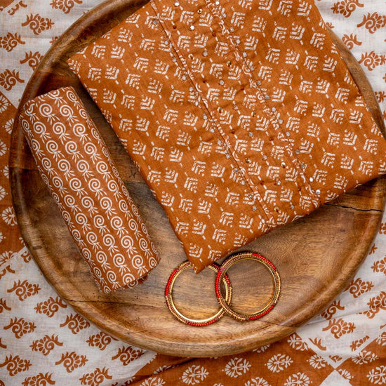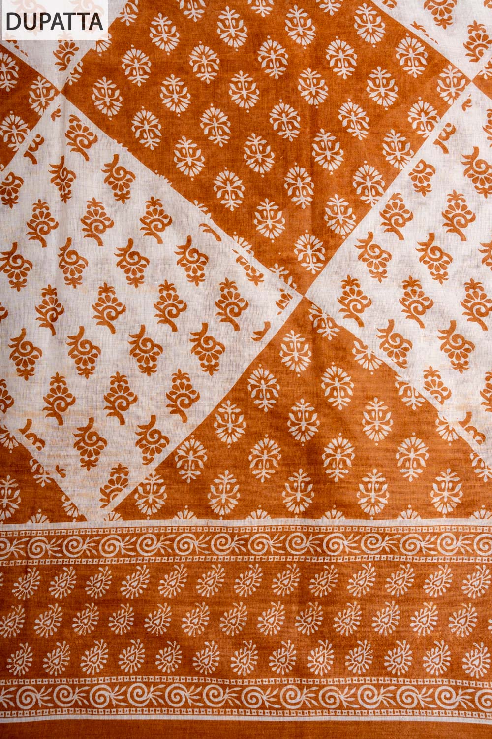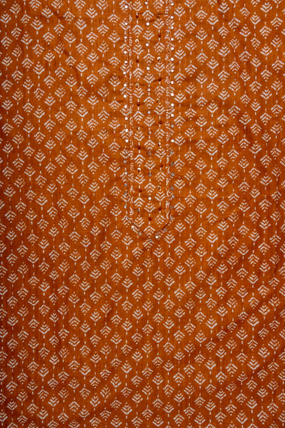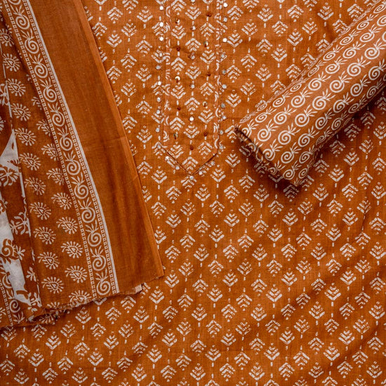 Panna Brown Sequence, Threadwork & Digital Printed Cotton Unstitched Salwar Suit With Cotton Dupatta