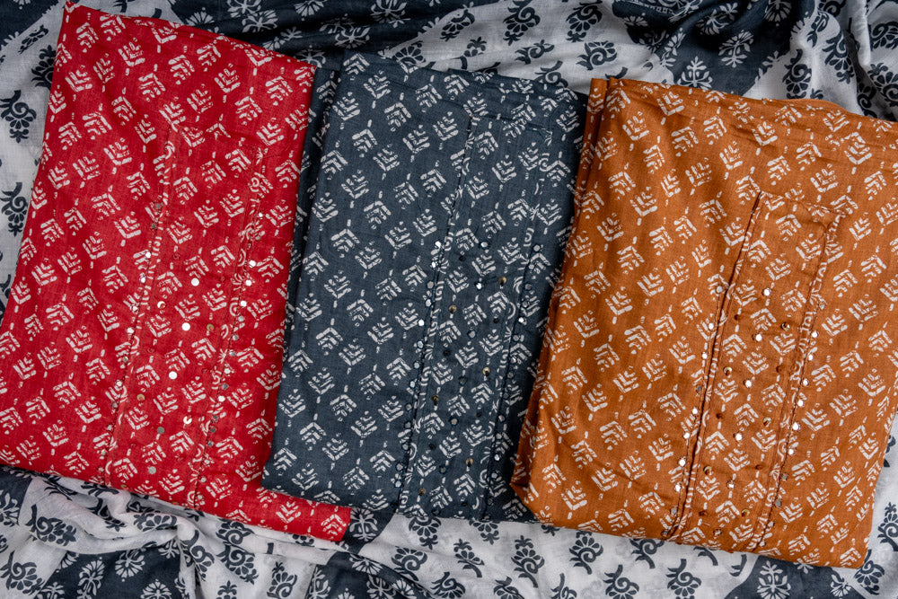 Suitable For : Informal occasions like small pujas, kitty parties, casual family lunches or dinners, ladies’ tea-time get-togethers, intimate festive celebrations, visiting close friends or relatives, and casual office parties are perfect for light unstitched suits.