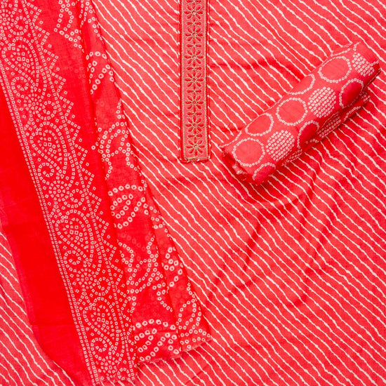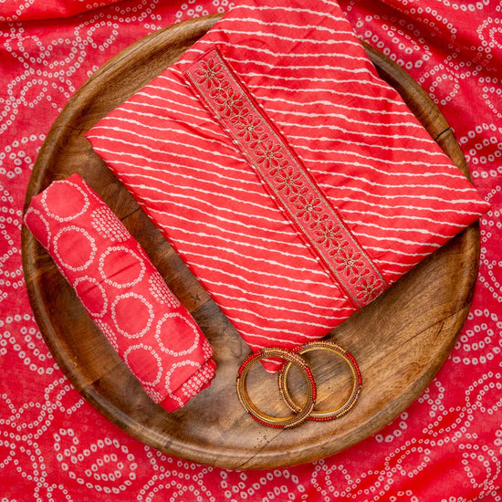 Panna Coral Cutdana, Meenakari, Threadwork & Lehriya Printed Cotton Unstitched Salwar Suit With Cotton Dupatta