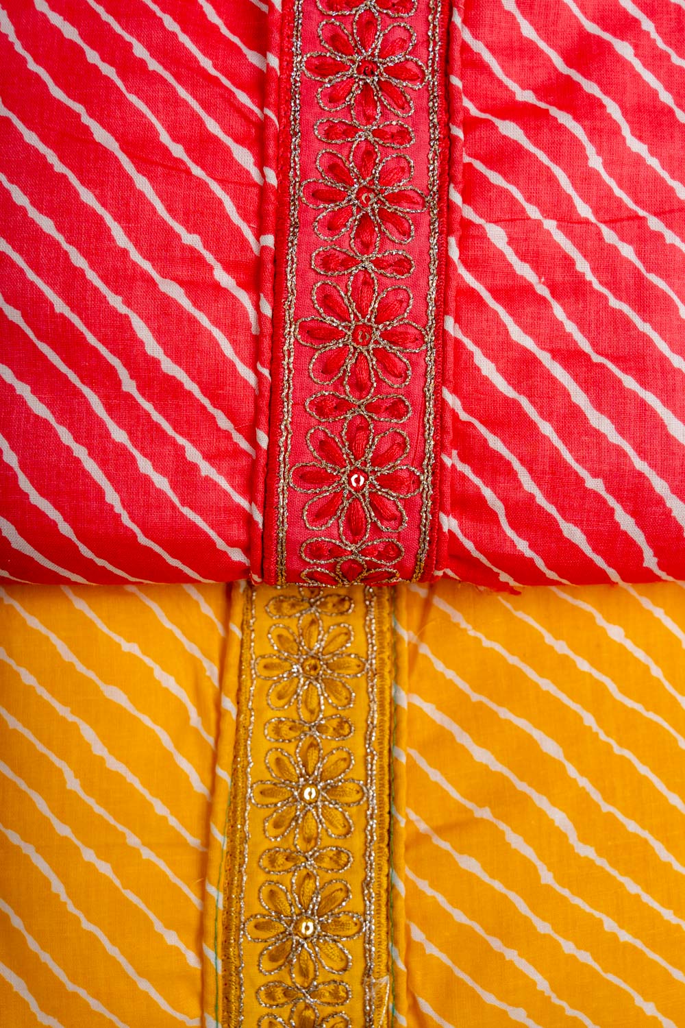 Made from Cotton, this unstitched suit with Cutdana, Lehriya Print, Meenakari & Threadwork combines elegance with ease for Informal Occasion. The Color Variations in this design and tailoring options make it a wardrobe staple. Dry Wash / Dry Clean advised.