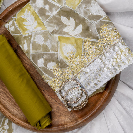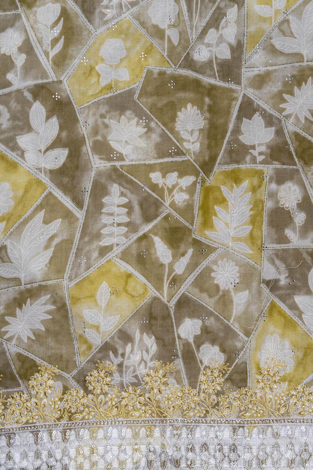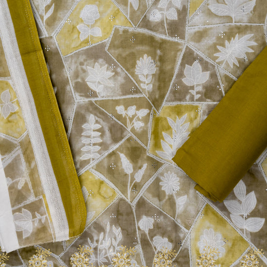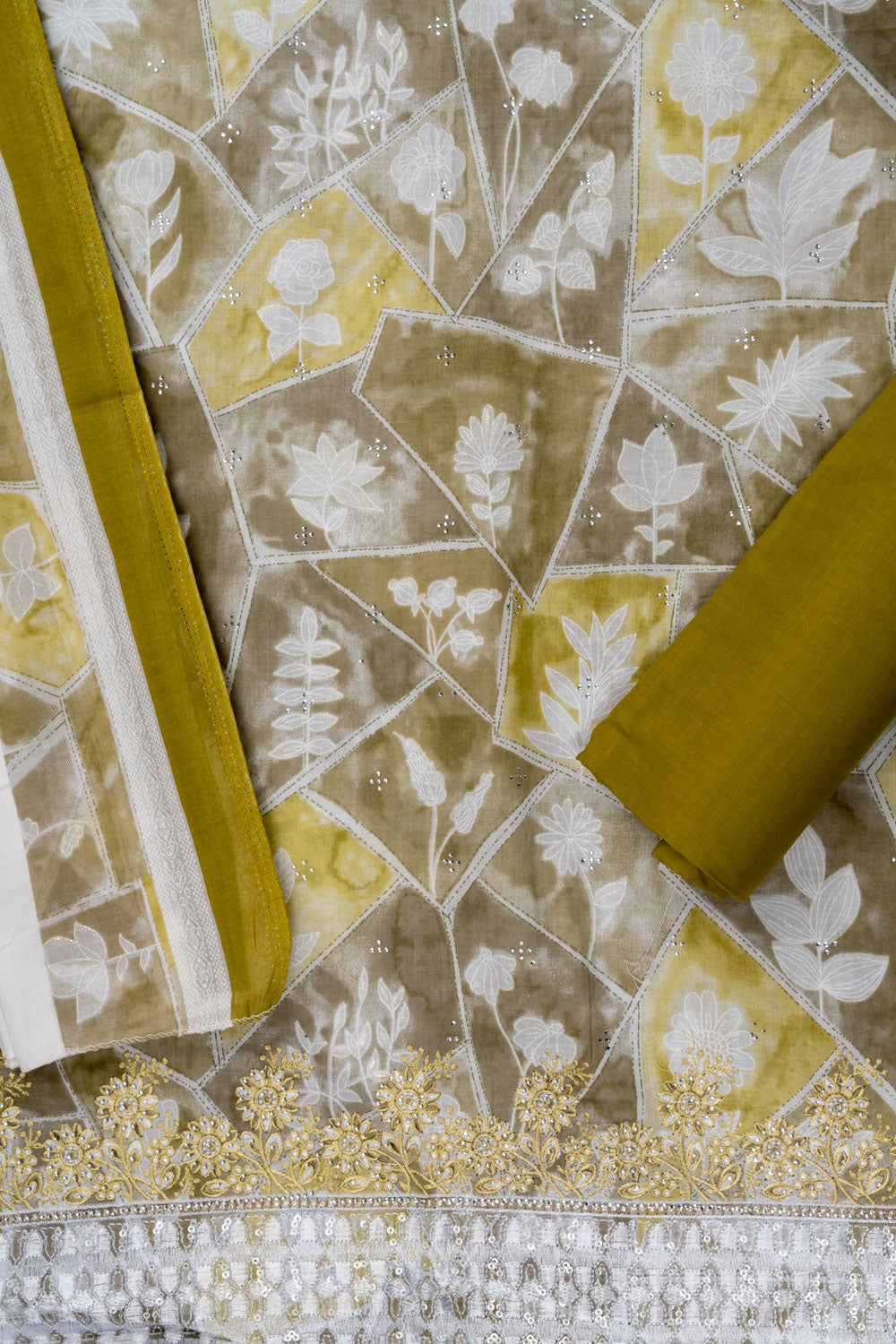 Panna Mehndi Sequence, Threadwork & Digital Printed Cotton Unstitched Salwar Suit With Cotton Dupatta