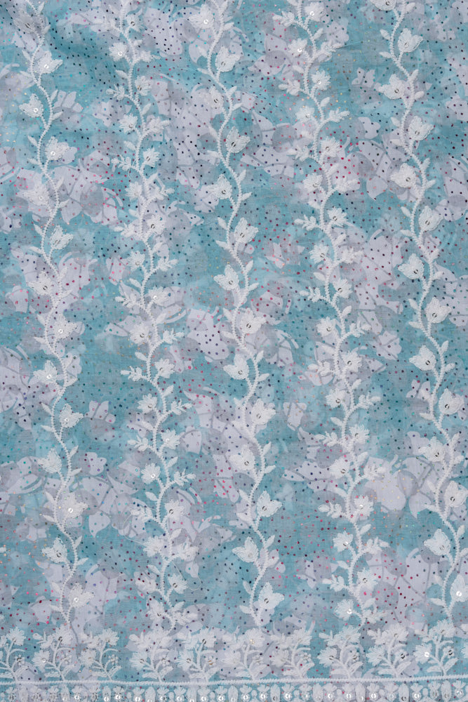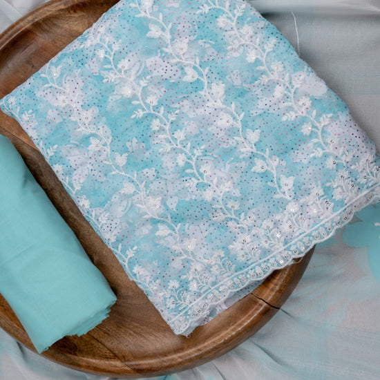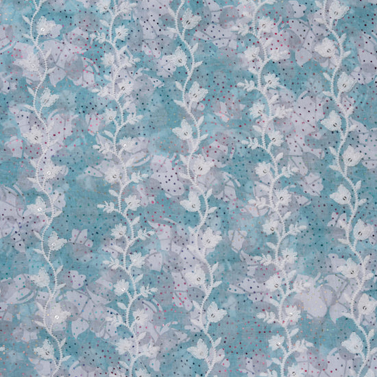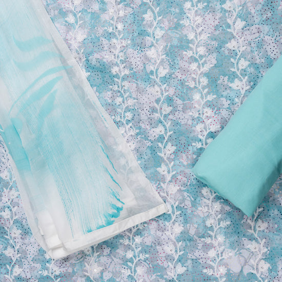 Panna Sea Green Sequence, Threadwork & Floral Printed Cotton Unstitched Salwar Suit With Cotton Dupatta
