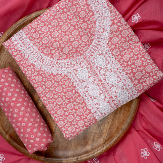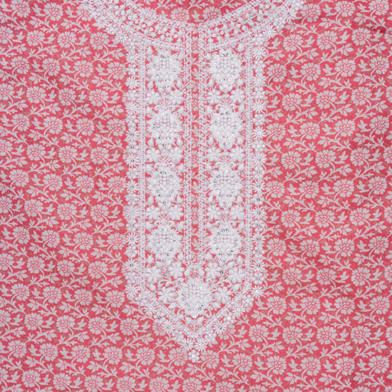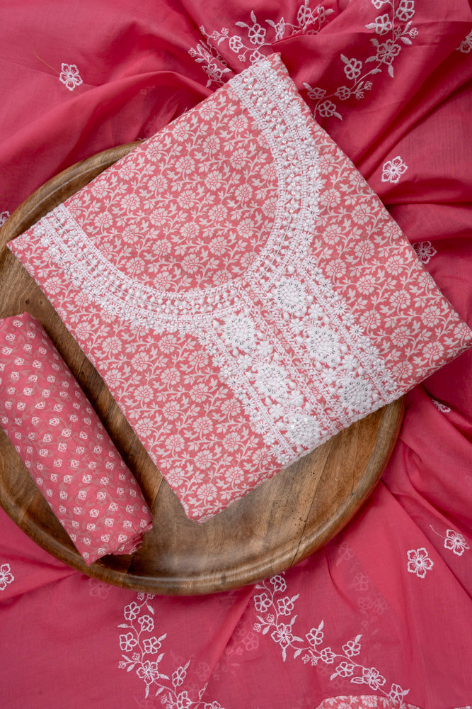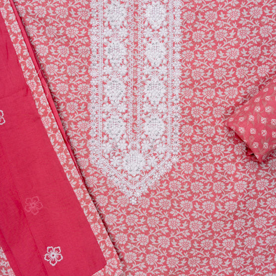 Panna Gajari Sequence, Threadwork & Floral Printed Cotton Unstitched Salwar Suit With Cotton Dupatta