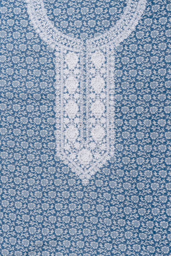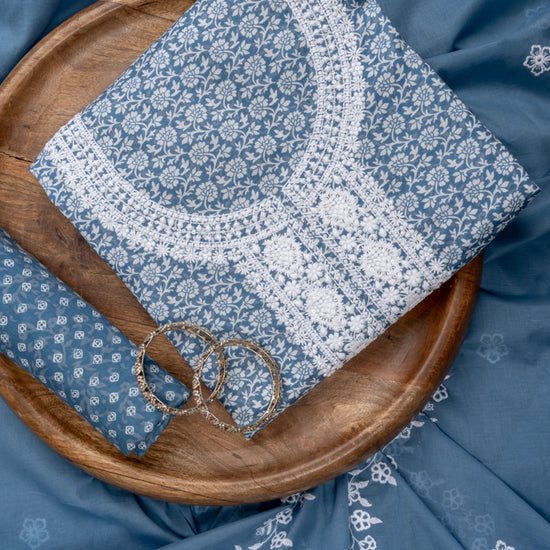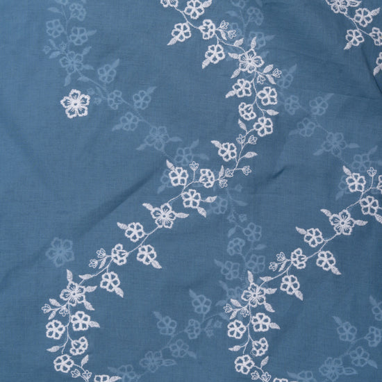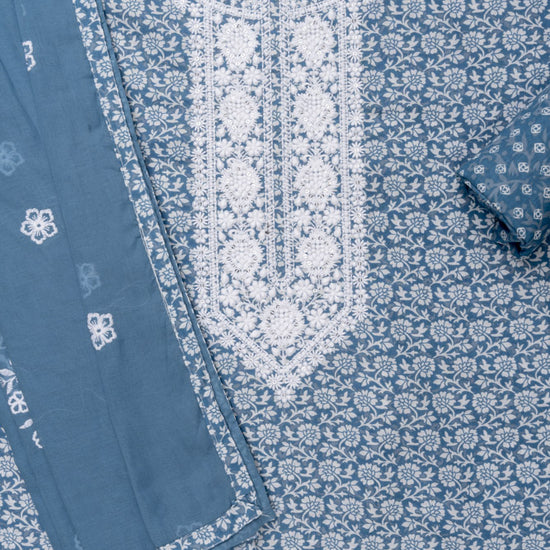Panna Grey Sequence, Threadwork & Floral Printed Cotton Unstitched Salwar Suit With Cotton Dupatta