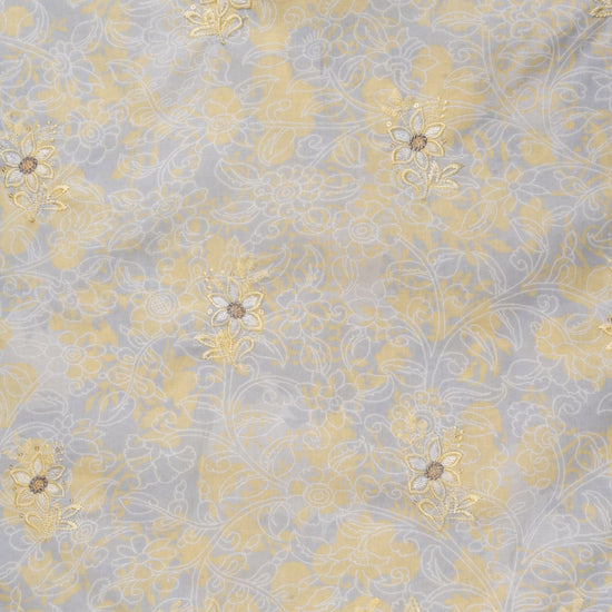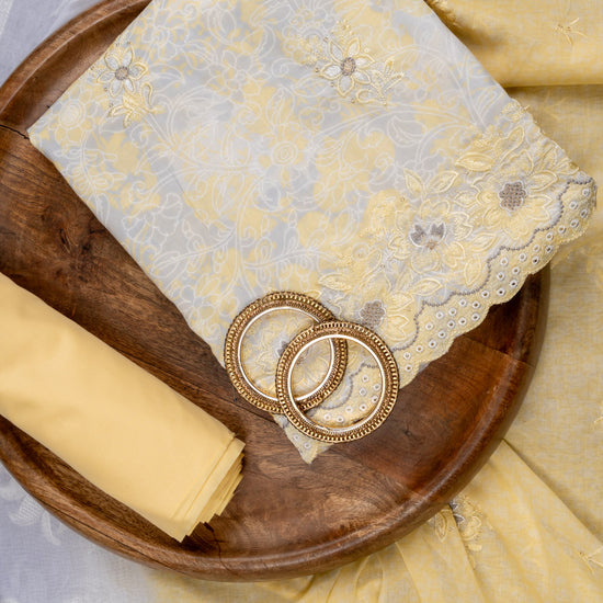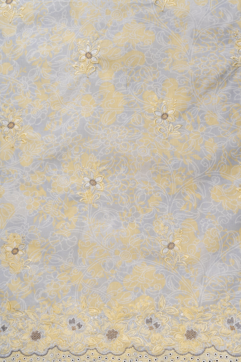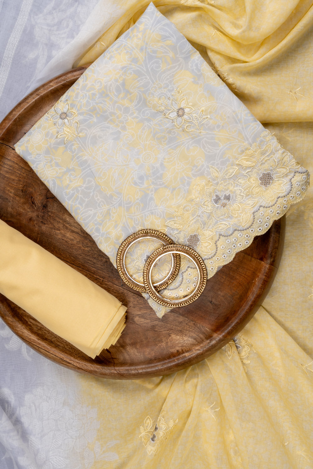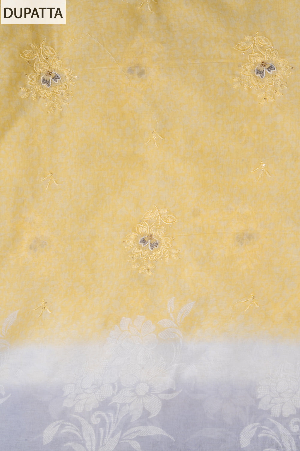 Panna Lemon Gold Sequence, Threadwork & Floral Printed Cotton Unstitched Salwar Suit With Cotton Dupatta