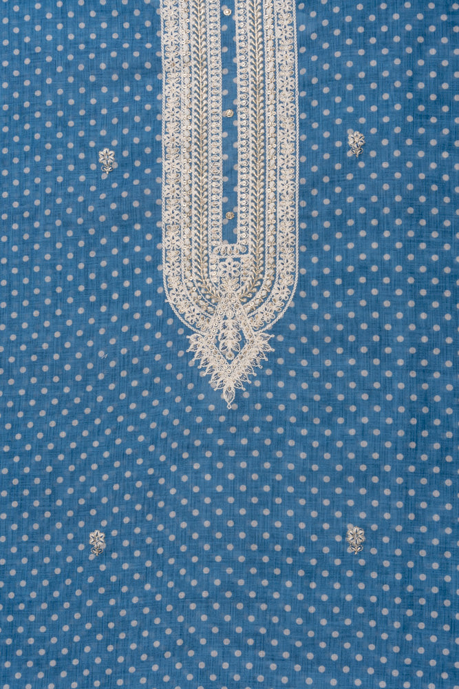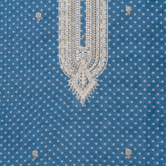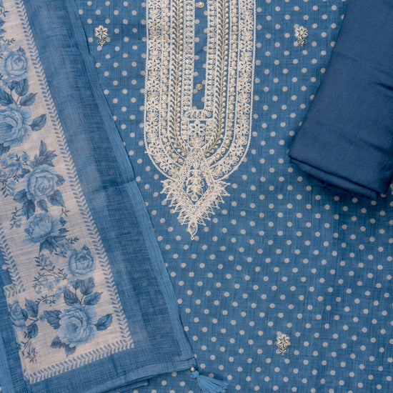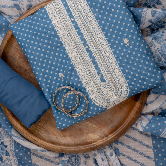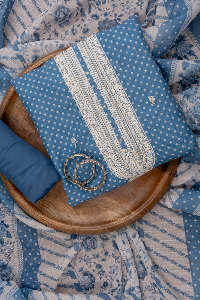 Panna Blue Grey Sequence, Zari Threadwork & Digital Printed Cotton Unstitched Salwar Suit With Cotton Dupatta