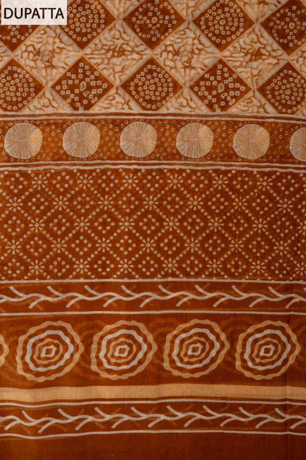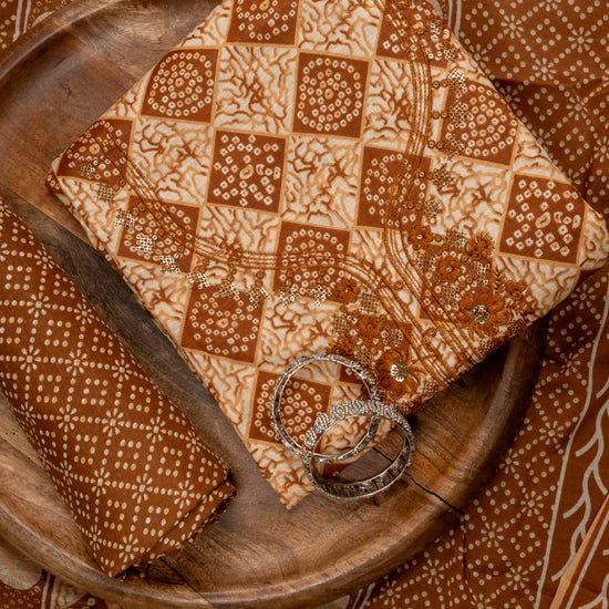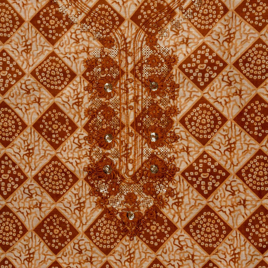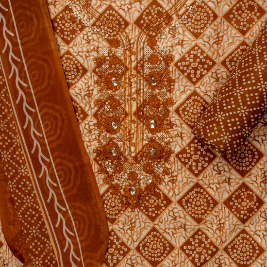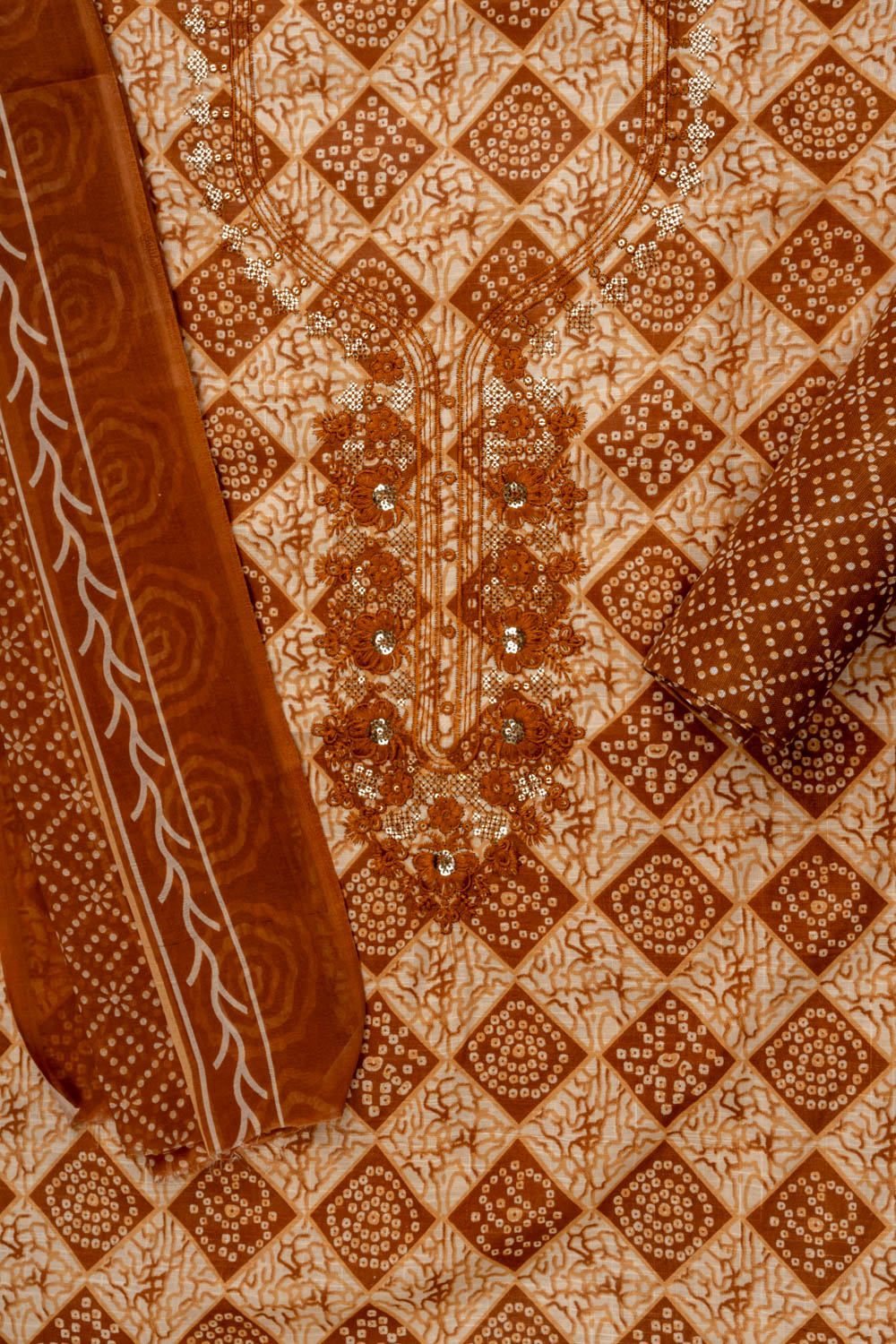 Panna Brown Sequence, Threadwork & Digital Printed Cotton Unstitched Salwar Suit With Cotton Dupatta