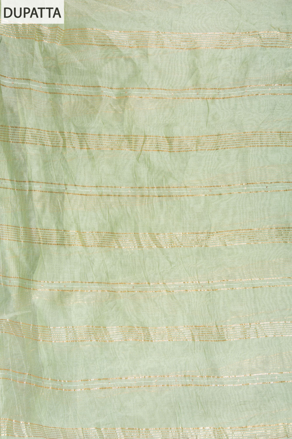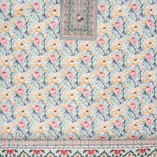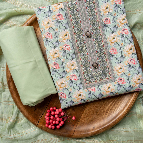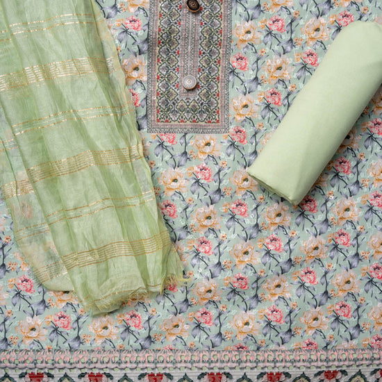 Panna Pista Sequence, Threadwork & Floral Printed Cotton Unstitched Salwar Suit With Cotton Dupatta