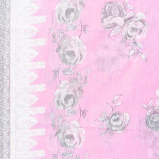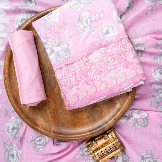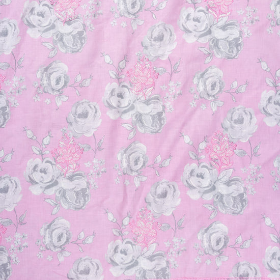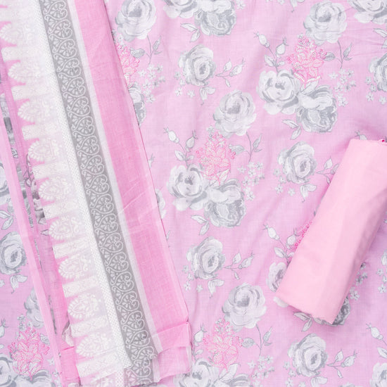 Pink Sequence, Threadwork & Floral Printed Cotton Unstitched Salwar Suit With Cotton Dupatta