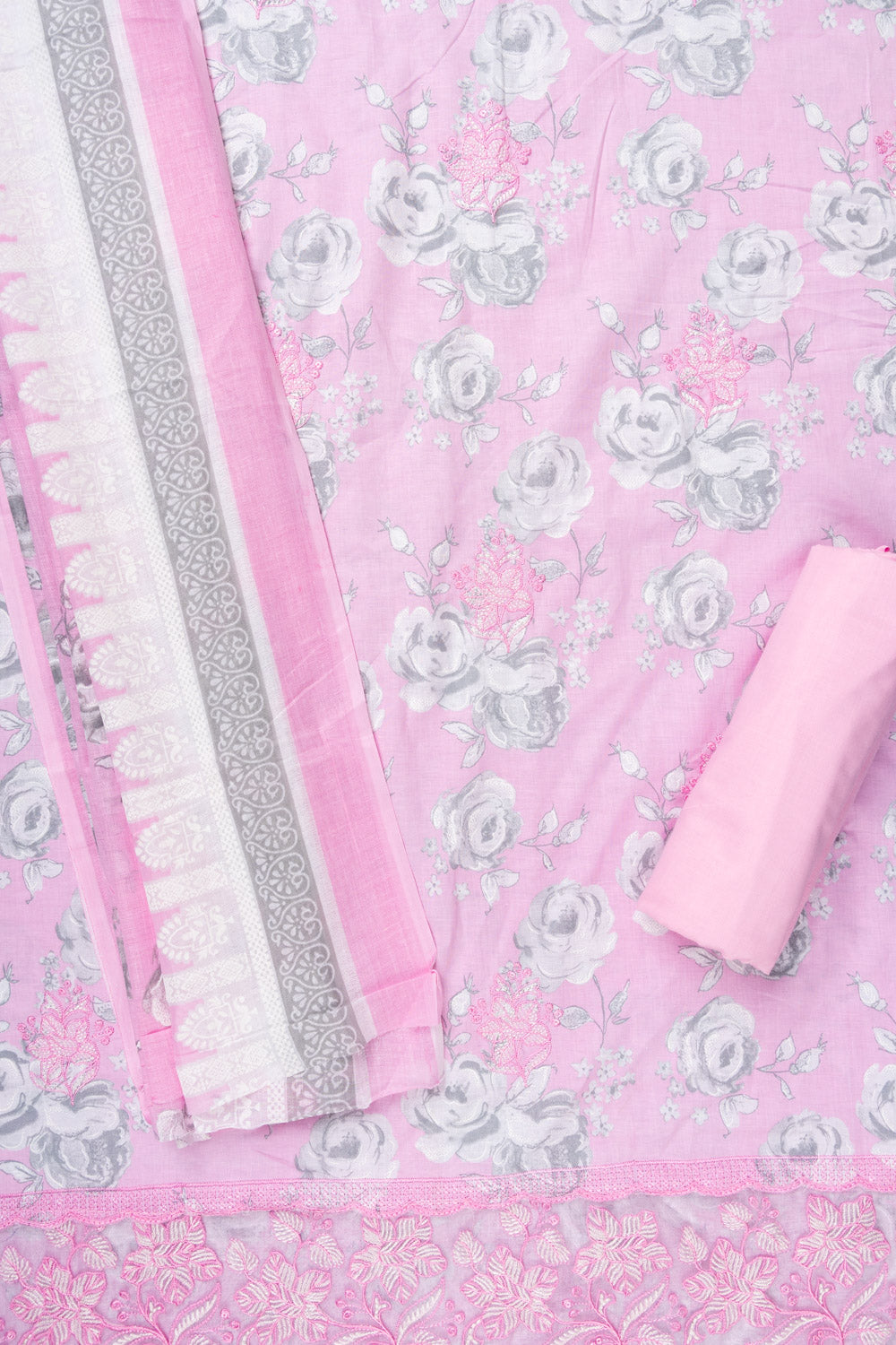Pink Sequence, Threadwork & Floral Printed Cotton Unstitched Salwar Su – The Panna Shop